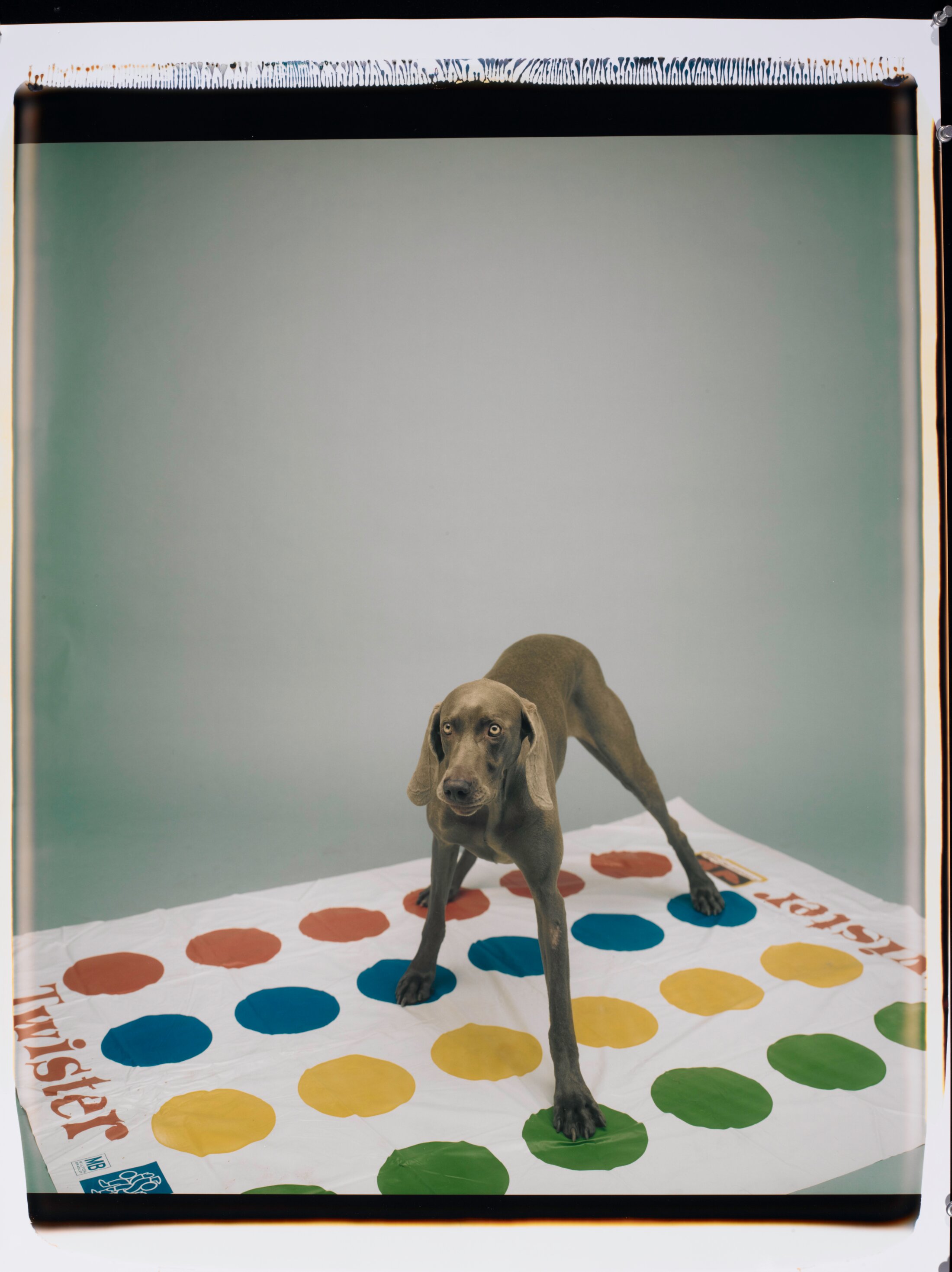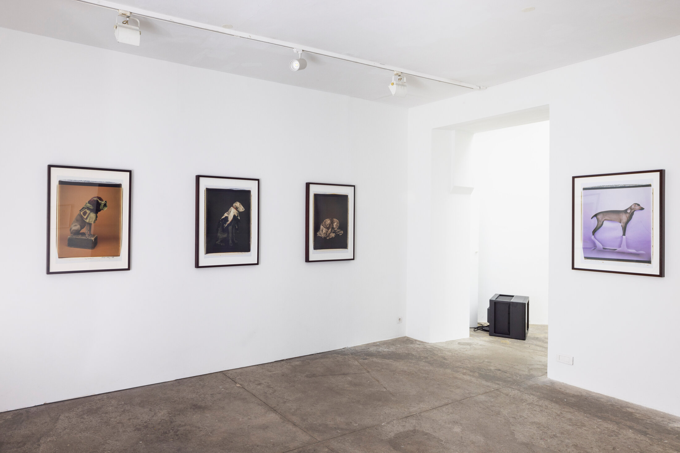 Pour sa première exposition monographique à la galerie Georges-Philippe & Nathalie Vallois, William Wegman voit son œuvre abordée sous l'angle de l’Agility, jeu complice dans lequel maître et chien forment une équipe qui doit effectuer un parcours avec un minimum de pénalités dans un temps défini par un juge. Sans laisse ni collier, l’épreuve ludique se pratique à travers la voix et la gestuelle. « J’ai toujours considéré mon travail comme une activité ludique partagée[1] » affirme William Wegman, qui fait de l’animal le partenaire à part entière du processus de création plastique. Cette relation « d’attention stimulée qui profite autant aux chiens qu’au maître » se rapproche ici de celle que Donna Haraway, philosophe américaine et pratiquante assidue d’Agility, développe dans son « Manifeste des espèces compagnes, chiens, humains et autres partenaires[2] ». L’ouvrage, paru en 2003, décrit « une chorégraphie ontologique, un jeu vital inventé par les participants à partir des histoires de corps et d’esprit dont ils héritent et qu’ils adaptent pour composer les verbes de chair qui les font tels qu’ils sont ».