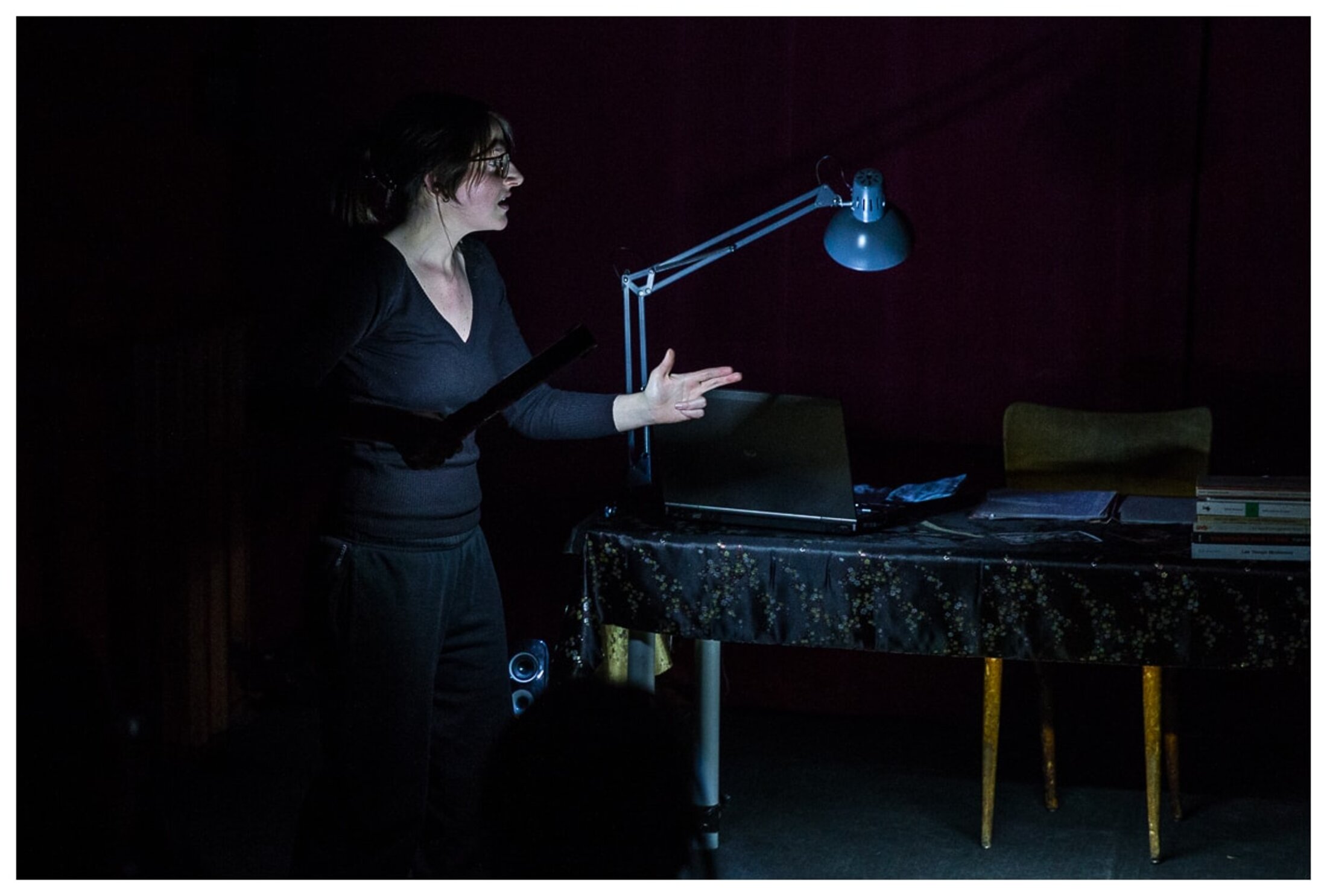 Présenté à la suite, "Maothologie" revêt un caractère plus personnel sans doute. Il raconte le mouvement des établi.e.s. qui, à la veille de mai 68, a vu des femmes et des hommes d'extrême gauche inspirés par les principes maoïstes de la révolution culturelle, s'établir dans les usines. Ce sont tout d'abord de jeunes intellectuels qui abandonnent leurs études pour se faire embaucher comme ouvriers. Jusque dans les années 1980, d'autres groupes Mao continuent à s'établir dans la sorte. La pièce portée par le monologue de Fanny Gayard, donne à voir l'expérience d'un de ces établis durant les trois années qu'il a passé à la chaine de l'usine de Renault Billancourt de 1979 à 1982. Le récit est livré par sa fille et par le regard qu'elle porte sur son père. Il est entrecoupé par la voix enregistrée de cet ouvrier éphémère dont on comprend qu'il répond aux interrogations de sa progéniture. Là aussi, on sent poindre la fierté d'une enfant devant l'histoire d'un père. Cependant, loin de déifier la parole paternelle, elle interroge cet héritage politique avec humour mais aussi avec la distance nécessaire à cet exercice. "La mise en scène de la filiation permet de mettre à nu le mythe, de le mettre à distance."