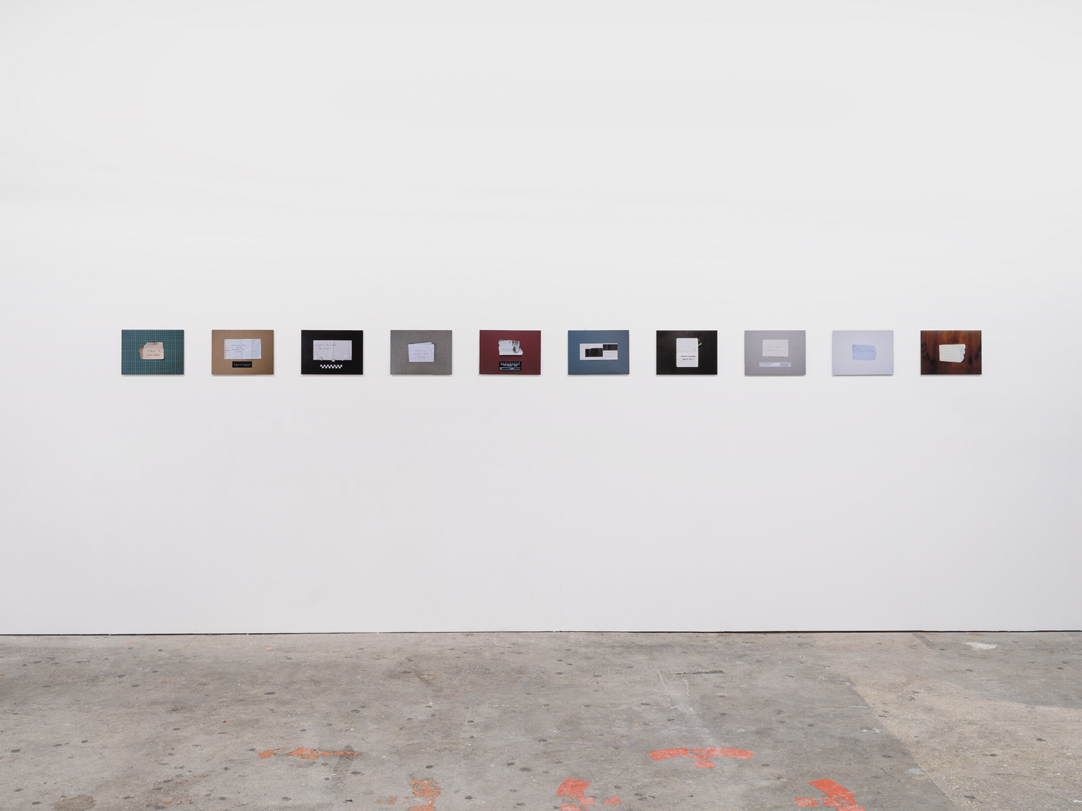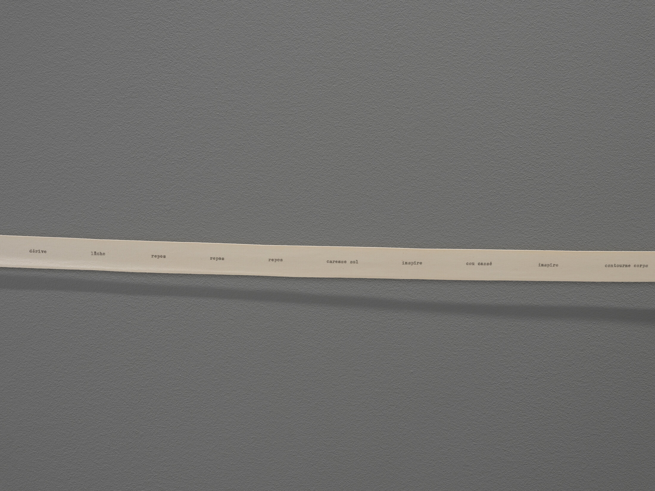 Les oeuvres assurent donc l’articulation spatiale de l’exposition, en prennent la mesure. La danse est aussi approchée par des cheminements qui touchent d’autres domaines. Ici, le policier avec « Pièces à conviction » (2019) d’Agnès Geoffray, série de dix photographies de mots d’ordres de braqueurs américains qui pourrait tout aussi bien se lire comme une sorte de partition textuelle pour une chorégraphie. Plus largement, les mots liés au vocabulaire chorégraphique sont utilisés dans bien d’autres domaines : en témoignent les expressions « pas de deux », « ballet diplomatique » ou encore « chassé-croisé ».