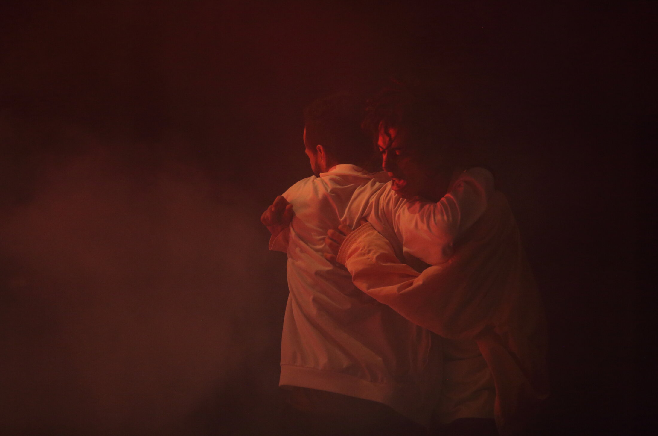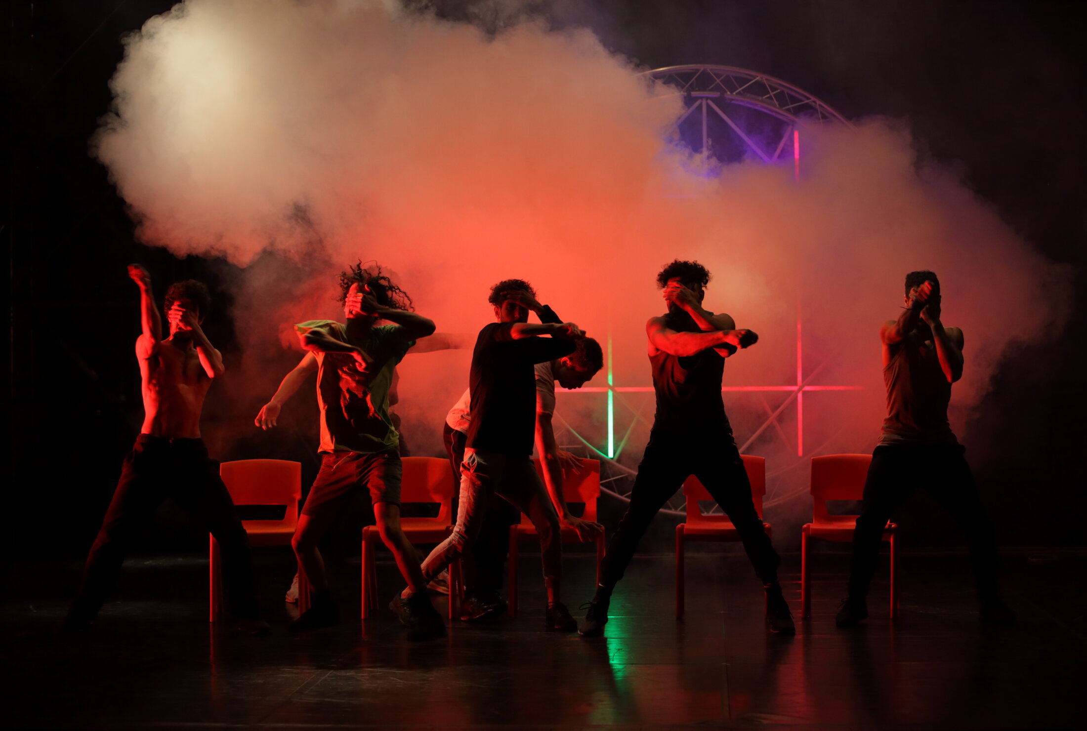 Projet de longue haleine, « Itmahrag » rassemble des jeunes musiciens et danseurs non professionnels issus des quartiers populaires du Caire, une jeune structure locale d’Alexandrie, B’sarya for Arts, et la Compagnie Olivier Dubois (COD), autour de la création d’un spectacle, une danse incendiaire célébrant le Mahraganat qui est déjà une performance en soi. Liée aux cérémonies festives – le mot signifie festival en arabe –, la musique met en scène les corps au son lancinants de voix autotunées que déversent dans les rues des haut-parleurs saturés, qu’on commémore un mariage de quartier ou une fête branchée.