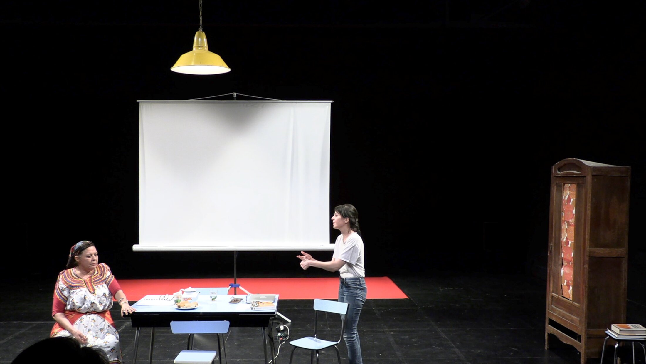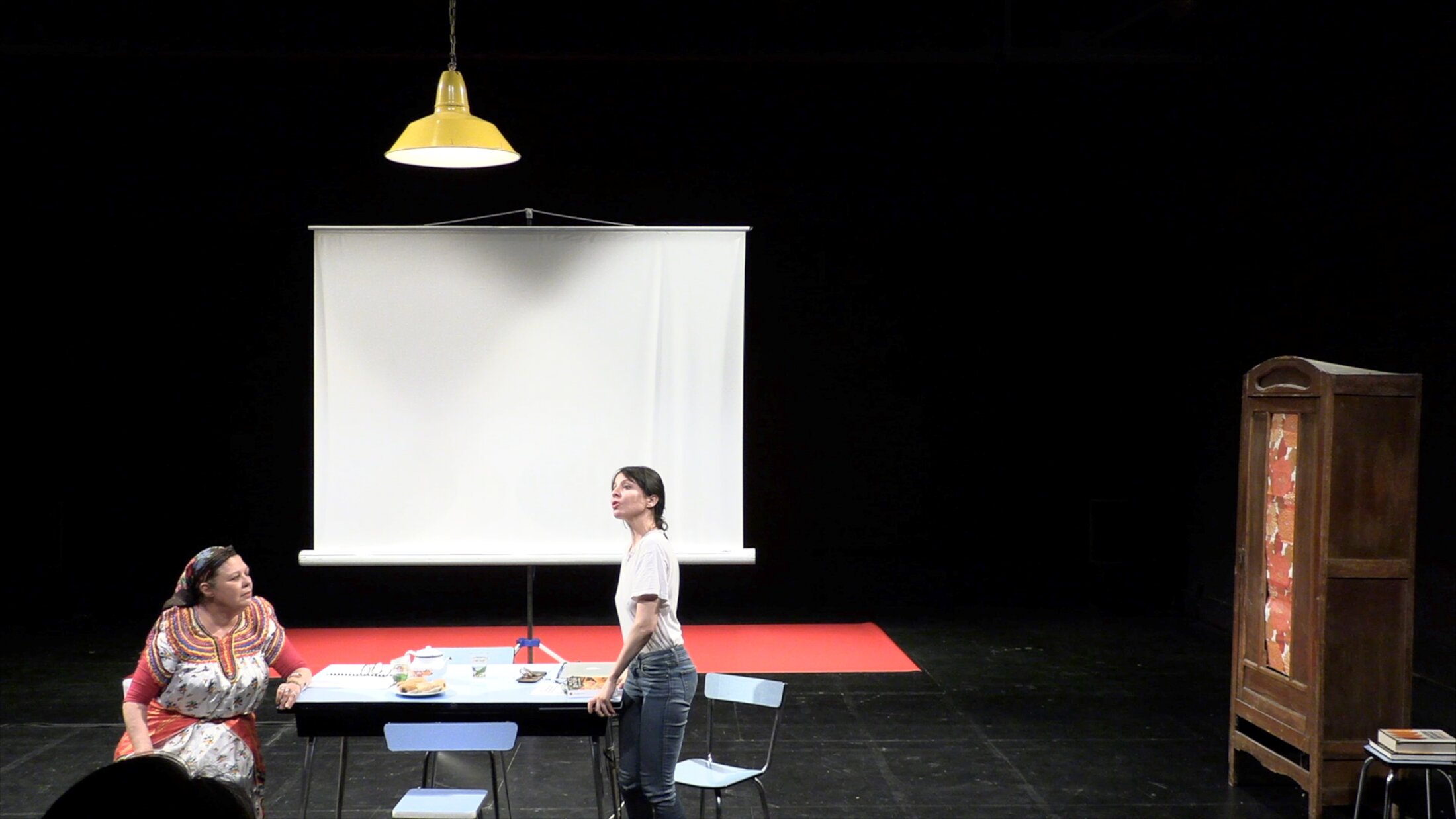 L’adaptation pour la scène du roman d’Alice Zeniter place la relation entre Naïma et sa grand-mère au cœur du spectacle. C’est la plus jeune qui va finalement briser le silence de la première génération, qui avait choisi de se taire. Naïma rappelle à Yema qu’elle s’est mariée à quatorze ans, qu’elle a eu son premier enfant l’année suivante, se considérant chanceuse que ce soit un garçon – Hamid, le père de Naïma – et qu’elle en aura neuf autres dans les années qui suivirent. Longtemps, Naïma a cru son père quand il lui promettait de l’amener, sa sœur et elle, dans le pays d’où il vient. Mais, inlassablement, chaque été, c’est à Dijon, chez les grands-parents maternels, que les fillettes passent leurs vacances. Avec la décennie noire, leur père a définitivement renoncé à se rendre au pays. « J’ai accepté que l'Algérie était trop dangereuse pour moi ! Et je me suis dit que j'irais plus tard, quand je serais prête » confie Naïma.