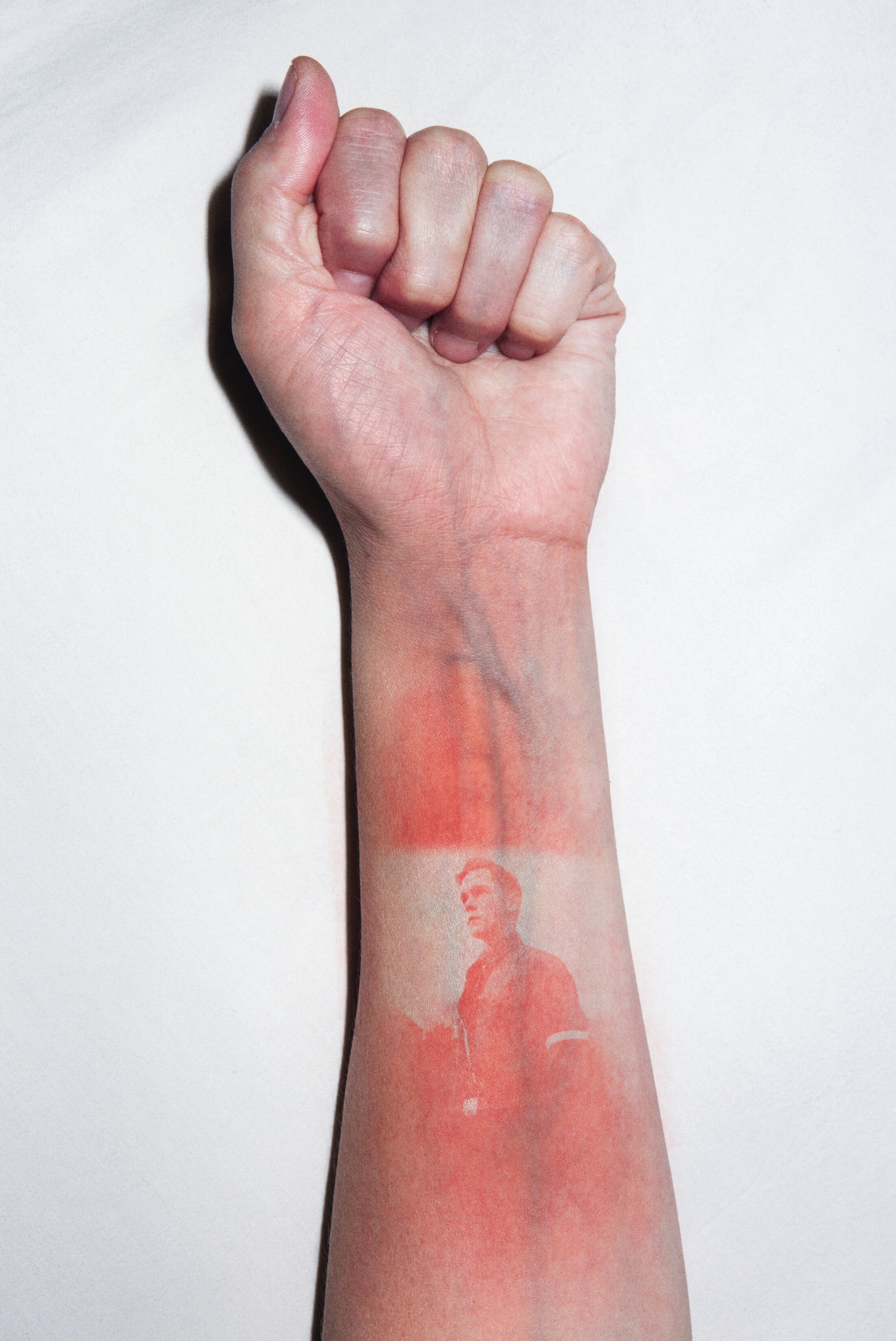 Le corpus photographique réuni sous le titre de « Fail anthology » est issu d’une série de dix livres édités par Thomas Mailaender chez RVB Books. Il témoigne de pratiques amateures que l’essor progressif d’internet a rendu possible comme le partage d’images virales. Composant une véritable anthologie visuelle des temps modernes, les images retouchées à la main sont valorisées par l’attention portée aux détails. Elles présentent les mêmes caractéristiques techniques et sont présentées dans des cadres colorés qui font référence à la couleur de chaque livre duquel elles sont extraites. Présenté sous la forme d’un mur d’images, « Crash archive » agglomère des centaines de photographies d’accidents de voiture allant des années soixante aux années quatre-vingt-dix. Elles sont issues des archives professionnelles d’un expert en assurance qui sillonnait les routes de France pour constater les accidents les plus graves, ce qui explique les annotations et le tampon de la gendarmerie locale au dos de chacune d’entre elles. Mailaender interroge l’impact visuel de ces images comme l’avait fait avant lui Andy Warhol dans la série « Car crash » débutée en 1962. La sérialité et la diffusion médiatique de ces images diminuent considérablement leur charge émotionnelle. Hors contexte et dépourvues de leur fonction légale, elles témoignent de notre rapport ambivalent, entre fascination et répulsion, pour les images violentes et morbides devenues banales. C’est à la suite d’un travail de recherche que Mailaender mène en 2013 à Archive of Modern Conflict[9] (AMC), fonds photographique privé fondé en 1991 et basé à Londres, qu’est née la série « Illustrated People ». L’artiste sélectionne vingt-trois négatifs originaux de la collection AMC qu’il va appliquer sur la peau de modèles volontaires avant de leur projeter une puissante lampe à ultraviolets (UV). Grâce à l’usage de la lumière, s’imprime alors une image éphémère sur la surface de la peau, le négatif apparaissant directement en positif sur le corps. Une fois ces tatouages solaires photographiés, les modèles sont autorisés à les faire disparaitre en se plaçant à nouveau sous la lampe à UV.