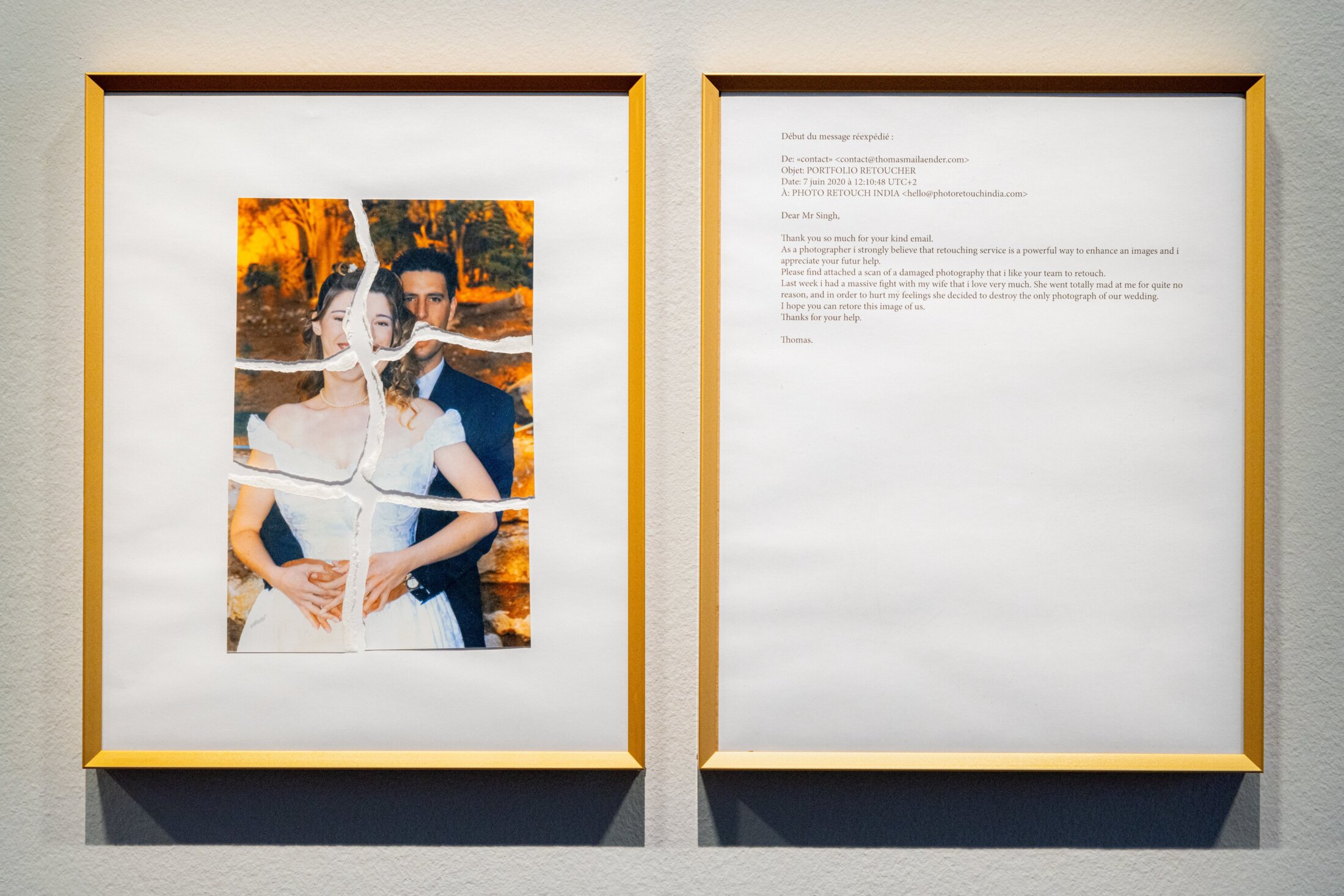 La série « Extreme retouch » présente des images manipulées, transformées et modifiées à l’extrême. Elles sont le résultat d’une correspondance picturale virtuelle entre Thomas Mailaender et plusieurs studios de retouches indiens à qui il envoie des photographies volontairement ratées, à l’image de celle où il a des traces de chocolat sur les dents. Les images retournées après « réparation » sont marquées par des camouflages de plus en plus grossiers. La série révèle le fonctionnement d’une économie dans laquelle l’image n’est qu’un fichier modifiable à l’infini, pareille à n’importe quel article personnalisable. Dans la série « Life and Adventures of a Silver Woman on Planet Earth », l’artiste revient sur la vie et l’engagement de Rosemary Jacobs, militante américaine victime des ravages du nitrate d’argent[4], qui a utilisé la photographie pour documenter son histoire et dénoncer l’utilisation de ce composé chimique à des fins médicales. « Je suis grise depuis mes 15 ans environs. Au moment où j’écris cela j’en ai 72. Quand j’avais neuf ans, un docteur m’a prescrit des gouttes nasales, pour une maladie nasale récurrente. Elles contenaient de l’argent. En termes médicaux, ma condition s’appelle l’argyrisme[5] ». Composée d’images d’archives et de clichés réalisés par Thomas Mailaender lors de sa rencontre avec Rosemary Jacobs en mars 2020, la série joue avec les codes traditionnels à la fois de la photographie vernaculaire et d’une prise de vue formelle.