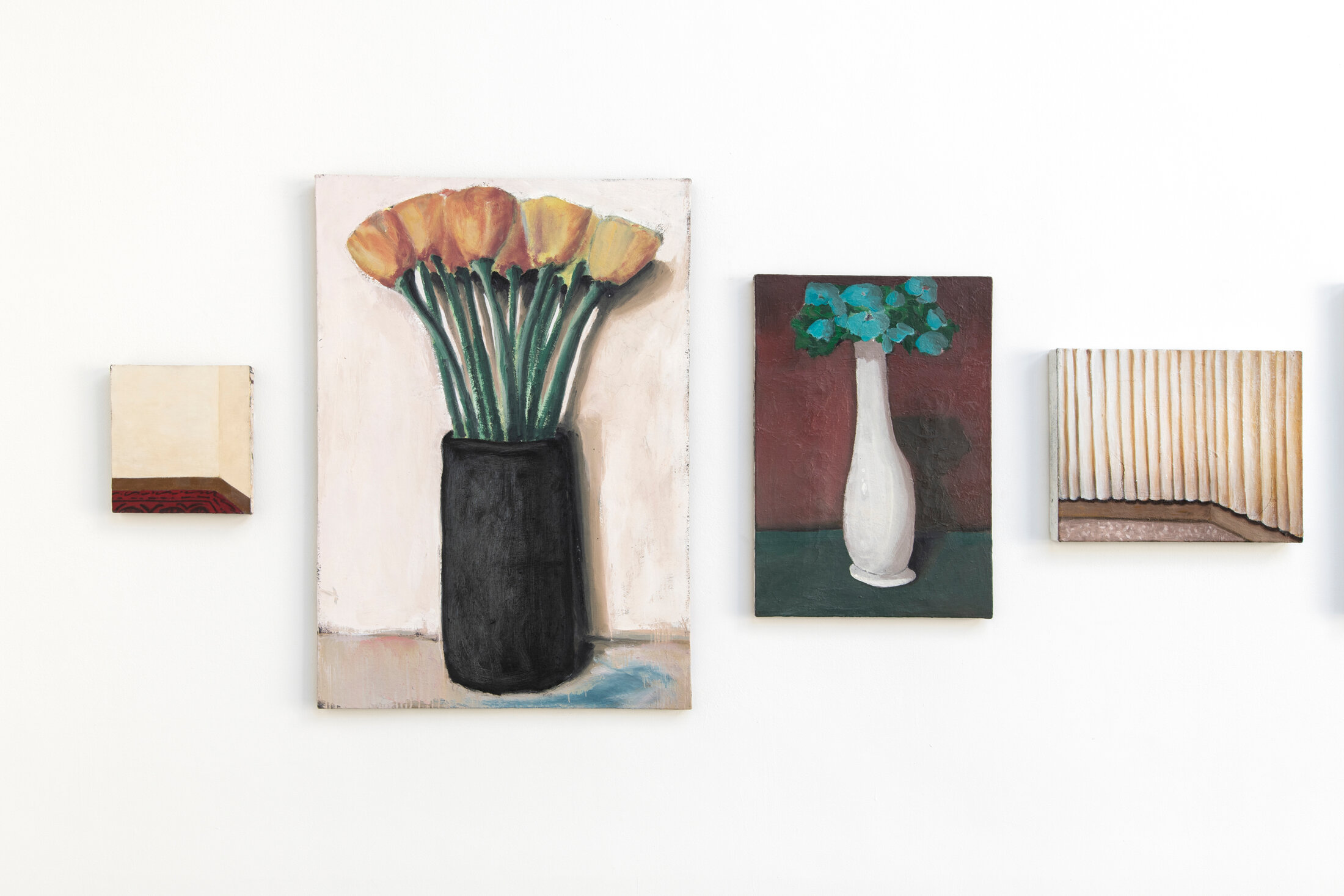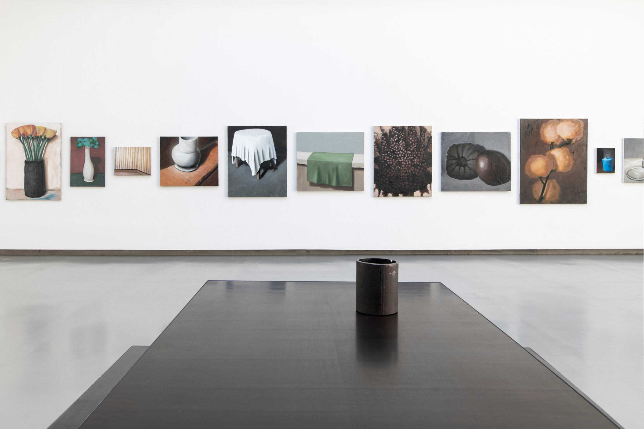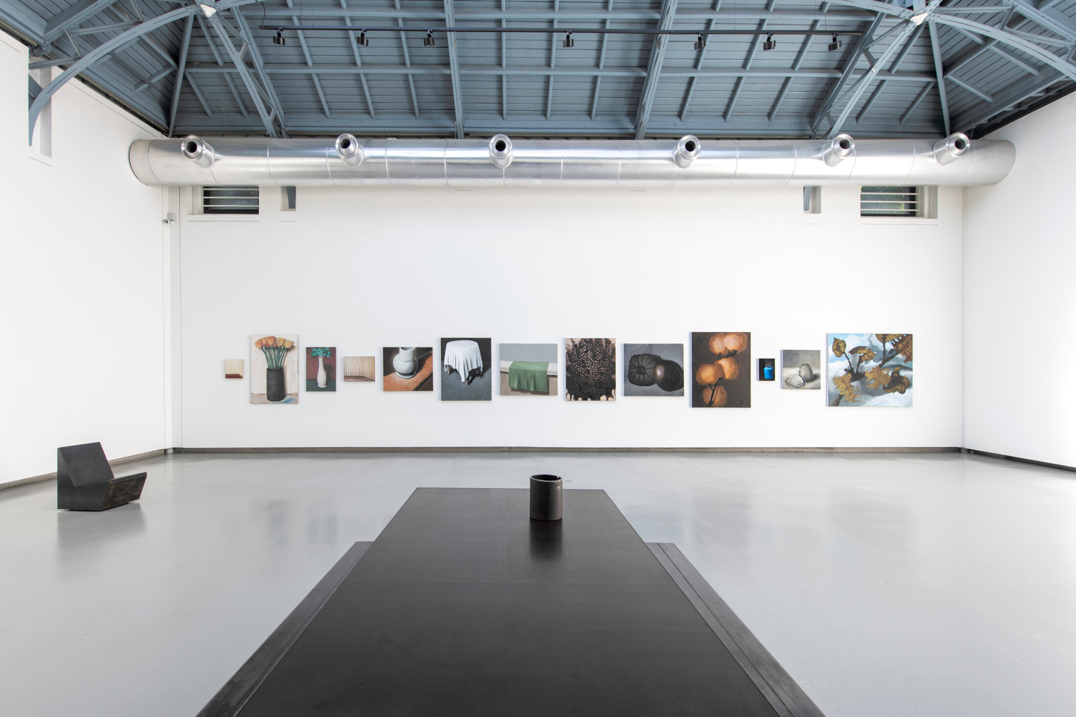 La très grande table de bakélite renvoie à la peinture. Elle divise l’espace en deux, l’un sombre, l’autre clair. Comment est-ce qu’on présente la peinture ? Comment la montre-t-on ? « Coi », mot oublié composé de trois simples lettres que plus personne n’emploie ni n’écrit, désignait jusqu’au XIXème siècle, le genre pictural de la nature morte. Le terme anglais de « Still life » a longtemps été traduit par « nature coite » invoquant le silence et la tranquillité. Mais son immobilité a été comprise comme morte. Pourtant, c’est un silence existentiel, entre quiétude et stupeur, qu’expriment les toiles dépouillées de Cristof Yvoré. Dans cette rétrospective en treize tableaux, regarder la peinture en tant qu’objet, en comprendre la confection, parait essentiel. « Nous n’avons ici à faire qu’à ces délectables bouts. De purs morceaux, irréductibles[5] » écrit Joël Riff. « Et que l’on étudie les contours nobles d’une scène héroïque ou religieuse, c’est toujours de la peinture qu’on regarde, de la matière colorée étalée sur une surface ». À la Verrière, « Coi » invite à l’expérience de la permanence.