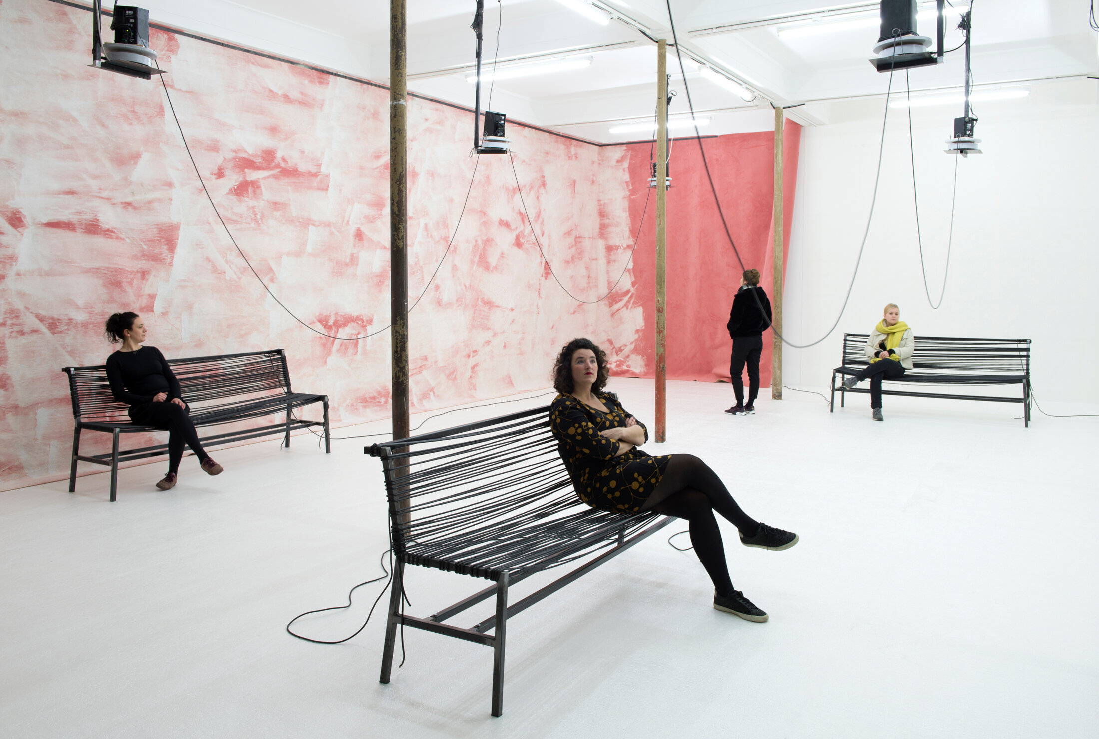 Les trois scénarios imaginés au départ pour chacun des espaces du centre d’art afin de faciliter la spatialisation s’effacent dans l’installation finale. La petite salle incarne l’espace d’accueil de la banque du sperme où se présentent les protagonistes : c’est l’espace générique de la pièce à entendre. La grande salle du bas correspond à l'entreprise elle-même. La salle du haut est un espace plus domestique, intime, le lieu d’une tentative de retrouver l'humain derrière le stéréotype, en vain. Si tout cela n'est pas explicite dans l'installation, c'est parce qu'Anne Le Troter a voulu restituer des ambiances, des atmosphères, plutôt que de produire l'exacte réplique des locaux de l’entreprise. Ainsi, la grande salle du rez-de-chaussée n’illustre pas directement l'établissement. Pourtant, en javellisant une moquette (élément récurrent dans ses installations, servant à la fois de décor et de moyen d’insonorisation des espaces) auparavant utilisée pour l’aménagement de paquebots sur les chantiers de Saint-Nazaire, l’artiste donne à ressentir l'aseptisation du lieu, qu’elle soit liée à la conservation stérilisée des spermatozoïdes ou à l’invention par la parole de personnages stéréotypés à partir d'individus réels.