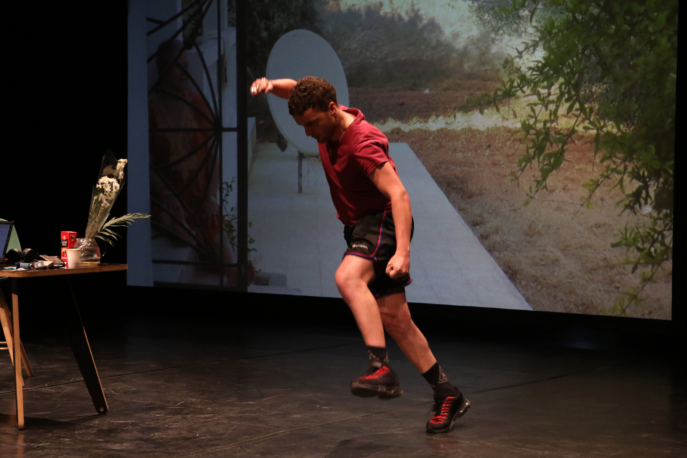 « Akerman / Habiba » de Bachir Tlili, créé il y a quelques jours lors des 19ème Rencontres à l’échelle, met en résonance les histoires intimes de la cinéaste belge Chantal Akerman lorsqu'elle filme les derniers moments de la vie de sa mère dans « No Home Movie » (2015), de la mère du comédien, Leila, dont il ne peut se remettre de la mort, et de sa grand-mère tunisienne Habiba qui l’a élevé et dont la présence au plateau est assurée par une projection vidéo qui occupe une grande partie du mur du fond. Le résultat traduit quelque chose de très situé dans l’intimité, une mise à nu d’une grande sensibilité au cours de laquelle il fume, court jusqu’à épuisement, porte le parfum de sa mère, prend le temps de l’action. Formé au Conservatoire national supérieur d’art dramatique de Paris, et récemment à l’affiche de « Mes parents » de Mohamed El Kathib, Bachir Tlili a été invité par les Rencontres à créer et mettre en scène ce spectacle très personnel dont Julie Kretzschmar est la seule productrice, « mais il y a des risques plus grands que de porter un artiste » confie-t-elle. « Avec deux dates, tu as le temps d’inventer ».