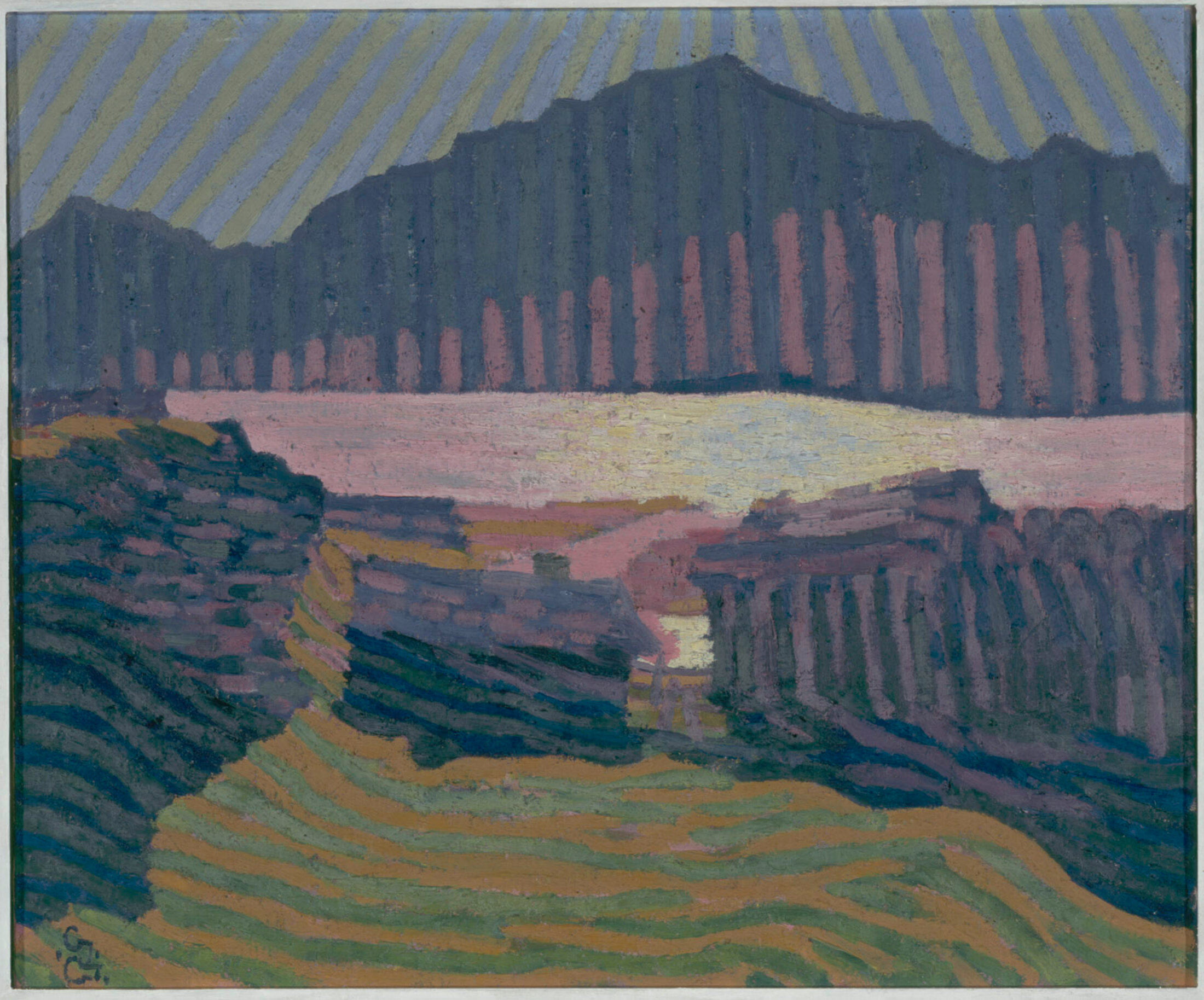 Le parcours s’achève avec des œuvres exécutés autour de 1910, dans lesquelles les éléments de la nature sont réduits au minimum. Ainsi simplifiés, ils tendent à l’abstraction. Des ciels étoilés d’Augusto Giacometti aux horizontales du lac Léman de Hodler, de la fragmentation du motif chez Emmenegger aux flamboyants soleils couchants de Vallotton, ces paysages magnétiques, dépourvus de figure humaine, entrainent le visiteur au-delà de la représentation, leur dimension cosmique révélant l’infinie beauté d’un monde jusque-là insondable.