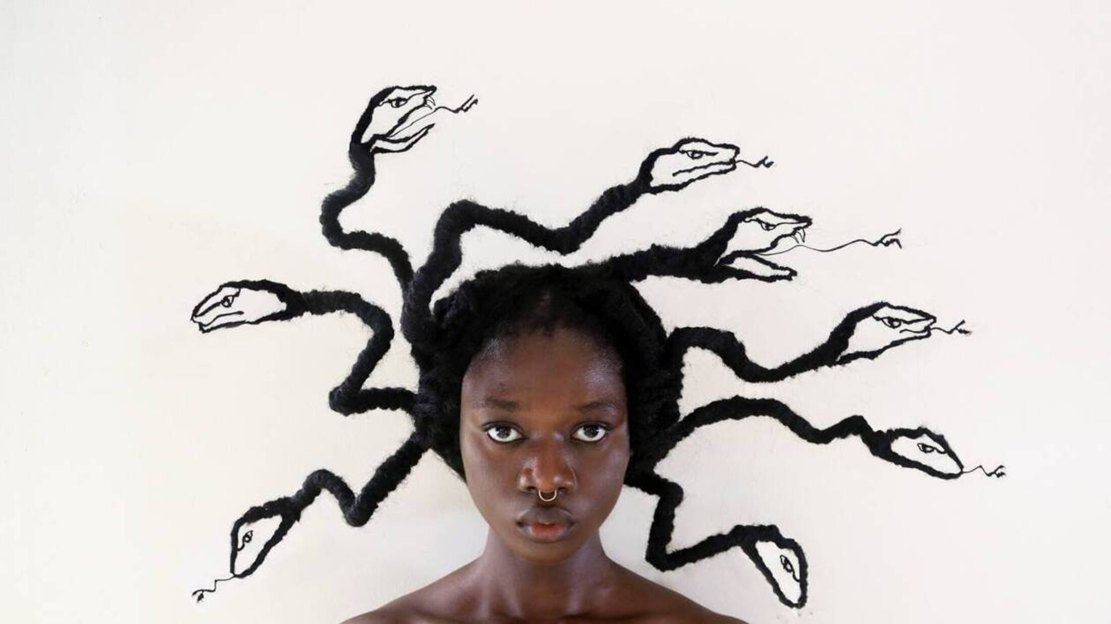 On la retrouve dans une photographie de l’artiste féministe ivoirienne Laetitia Ky[10] intitulée « Médusa[11] »(2022). Elle y campe une Méduse en femme abusée bien décidée à rester debout. Jamais plus elle ne se soumettra, ce que semble exprimer son impressionnante chevelure serpentine. À travers elle, elle dénonce les violences faites aux femmes, malmenées au sein de systèmes patriarcaux dans lesquels perdurent entre autres le mariage forcé et la culture du viol. Méduse se fait ici guerrière africaine. Elle apparait comme la figure mythologique la plus indiquée pour exprimer les révoltes contemporaines. De Crésilas à Dominique Gonzalez-Foerster, de Rubens à Giacometti, l’exposition « Sous le regard de Méduse » offre des éclairages multiples qui révèlent la fascination à travers les siècles exercée par cette figure plusieurs fois millénaire.