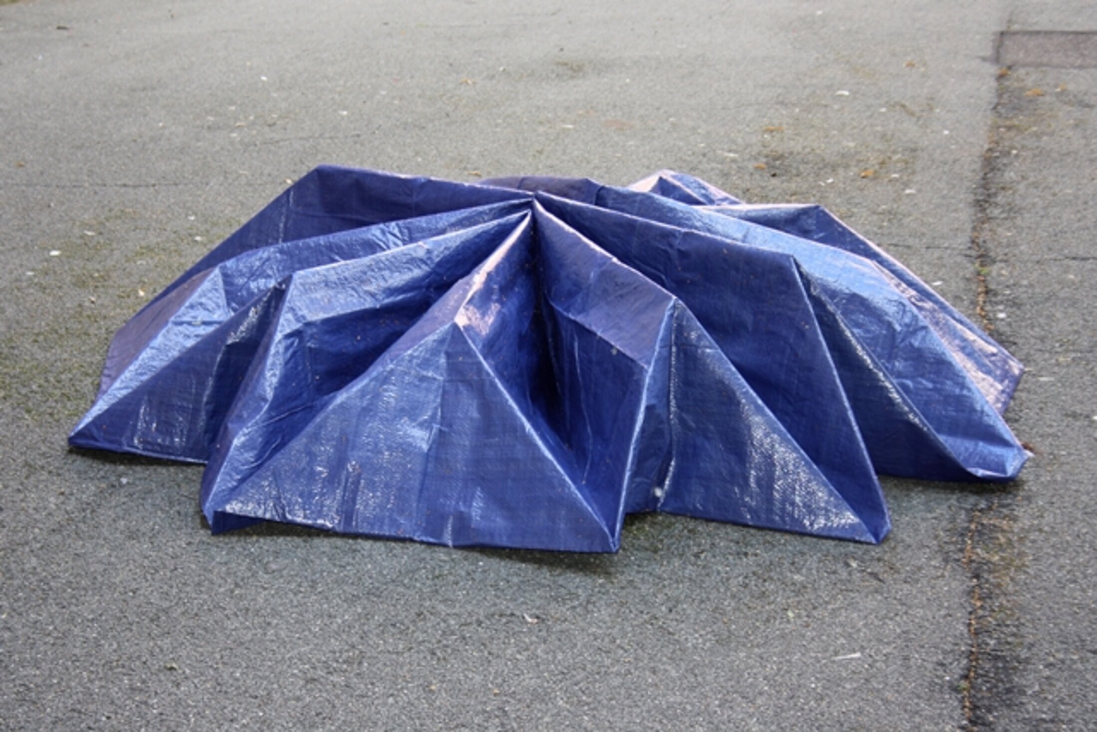 Projet pour une sculpture en bronze, « Special guest » s’inscrit dans la continuité du travail d’Aurélie Slonina, qui en montrant ce (ceux) que l’on ne veut pas voir, souligne l’ambivalence d’une époque pour le moins contradictoire dans sa gestion du vivant et de ses flux. Elle révèle ici un provisoire durable en choisissant d’utiliser un matériau robuste pour figurer la fragilité des plis d’un origami géant réalisé à partir d’une bâche en plastique bleue, symbole désormais de l’habitat précaire des migrants. Témoin banalisé de l’ampleur de la crise humanitaire qui se joue ici et maintenant, ce morceau de plastique ordinaire se multiplie au fur et à mesure des arrivées pour devenir omniprésent dans notre espace urbain. Cette allégorie tragique d’une situation d’urgence et de détresse s’invite dans notre quotidien lorsque le temporaire devient constant. Pour incarner physiquement cette pérennité de la précarité, l’artiste réunit les deux notions contradictoires dans un métissage plastique. Aurélie Slonina compose des œuvres hybrides engendrées par la fusion des contraires, représentations métaphoriques des dissonances du monde. Le trouble provoqué est ici renforcé par une interprétation plurielle du matériau. Si la qualité solide du bronze contredit la légèreté de la bâche pour rendre tangible l’effet d’un provisoire qui dure, à l’inverse, il vient anoblir la pauvreté de la matière plastique. Le précieux alliage de cuivre et d’étain, réservé traditionnellement à la représentation des élites et des rois, impose une image magnifiée des migrants. L’éclat solennel de l’airain gomme les préjugés qui stigmatisent ces populations. Aurélie Slonina désaxe ainsi le regard que l’on porte sur l’autre, celui qui est différent. L’habitat de fortune incarné par la bâche de plastique bleue se transforme en objet poétique sous les plis de l’art japonais de l’origami. Ne nous y trompons pas, s’il parait de prime abord pondéré et ludique, l’art sensible d’Aurélie Slonina convoque la forme plastique pour affirmer un propos politique.