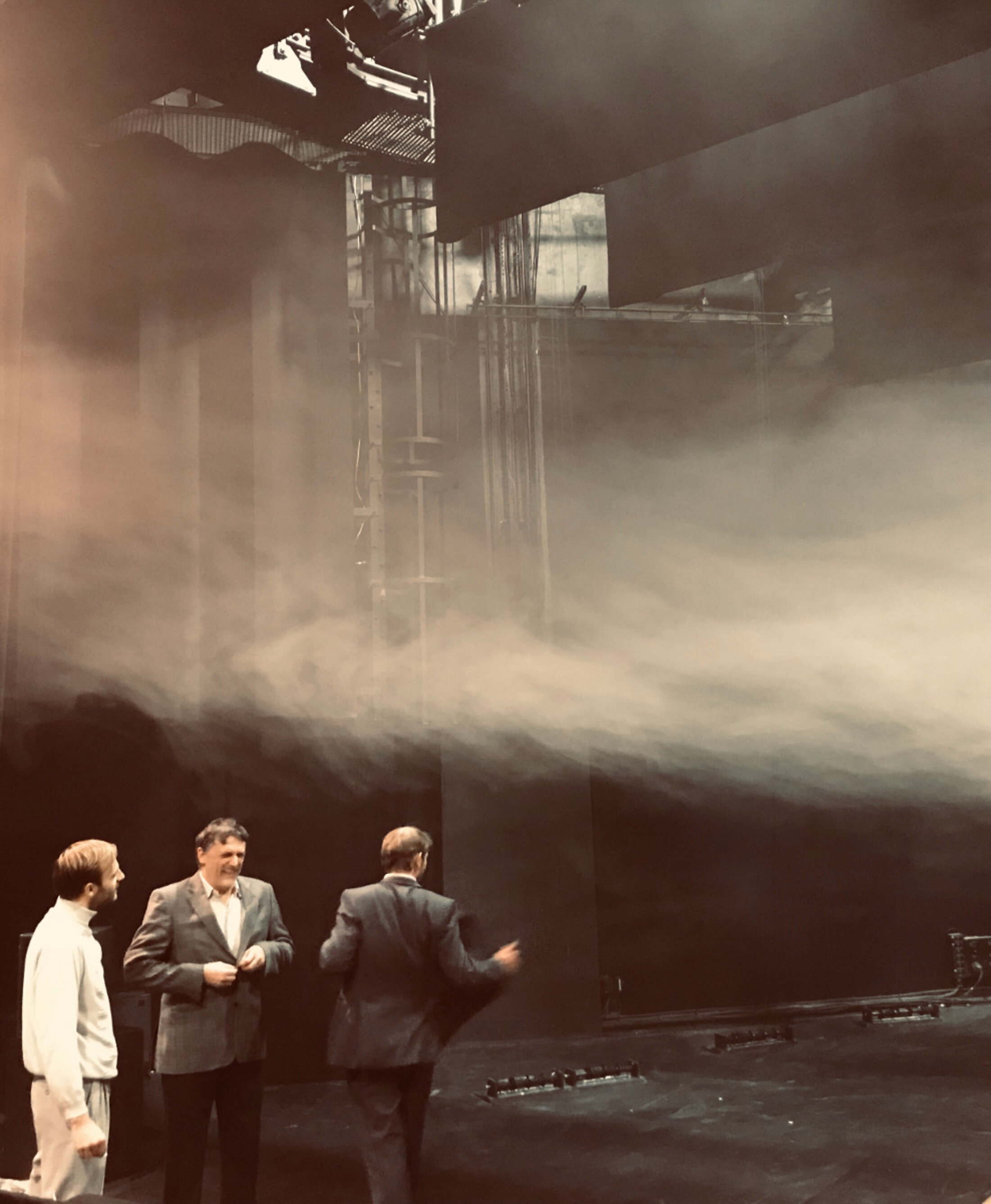AUX ECLATS - conception, mise en scène et scénographie Nathalie Béasse, avec Etienne Fague, Clément Goupille, Stéphane Imbert, musique originale Julien Parsy. Spectacle créé le 4 novembre 2019 au Quai - CDN Angers / Pays de la Loire.
