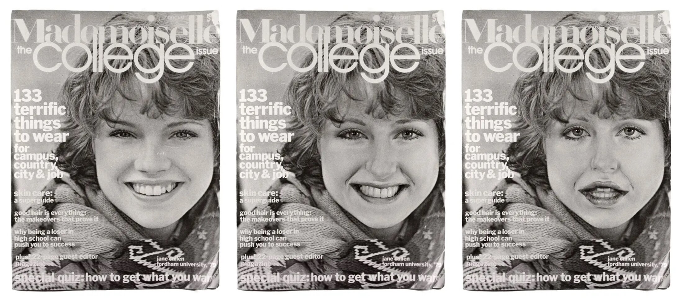 La seconde exposition, intitulée « Anti-fashion », s’intéresse à la relation qu’entretient l’artiste avec le milieu de la mode, qui parcourt l’ensemble de son œuvre à la manière d’un fil rouge. Alors qu’elle est encore étudiante, elle a recours aux vêtements et au maquillage pour créer des personnages, illustrant l’importance de la mode dans l’élaboration de l’identité. Dans la série « Cover girls » (1975), l’artiste joue pleinement avec la représentation stéréotypée des femmes et souligne le rôle fondamental du monde de la mode dans ce contexte. Chaque triptyque présente trois versions d’une couverture de magazine bien connu. La première figure la couverture originale. Dans la deuxième, le visage du modèle est remplacé par celui de Sherman l’imitant. Dans la troisième enfin, les expressions ont été exagérées. À une époque où la retouche numérique des images n’existe pas, l’artiste utilise un processus complexe à la chambre noire.
