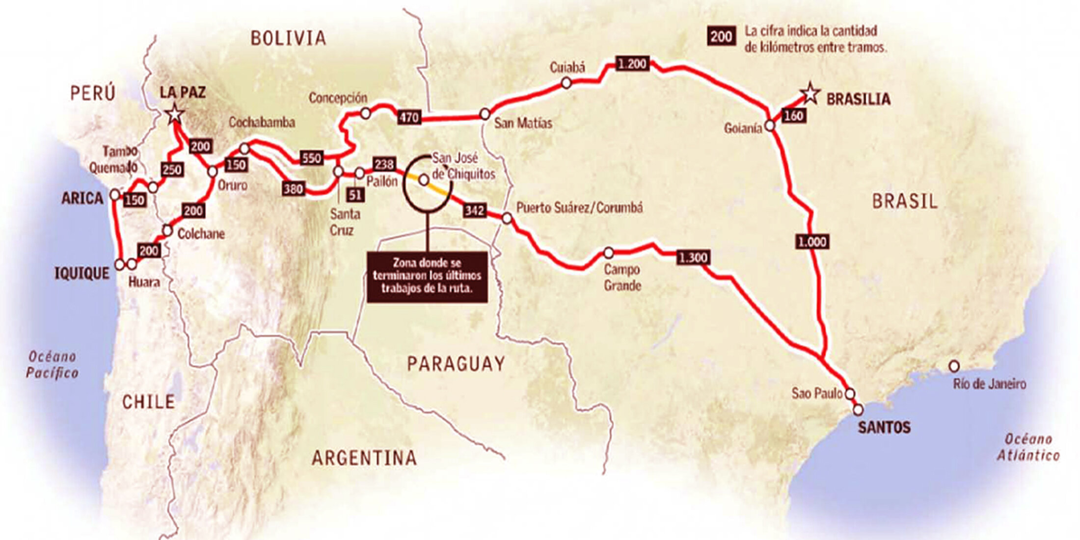 Le couloir bi Océanique profitera à sept des 12 pays d'Amérique du Sud, permettra sa connexion avec les ports des autres terres et facilitera les exportations vers différant continent comme l’asiatique et aussi Europe. Depuis 40 années que je suis en France et marie avec une femme Française, je suis français de tout cœur. Actuellement je suis en contact avec plusieurs responsables, ou charges de transport de quelques pays d’Amérique Latine. Malheureusement n’existé pas une coordination entre les différents pays qui développe ce projet, suite a divergents politiques. Qui peuvent être surmonte par les négociations économiques. Heureusement que de point du vu économique et commercial sont surmontables