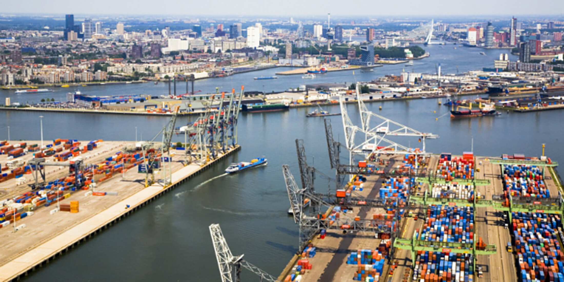 Du port de Rotterdam, les marchandises sont transportées par bateau, bateau, train ou route. Depuis l’année 2000, le Betuweroute, qui est un chemin de fer rapide entre Rotterdam et l'Allemagne, est déjà en construction. Par contre, les rivières Meuse et Rhin offrent un excellent accès à l’intérieur du continent.