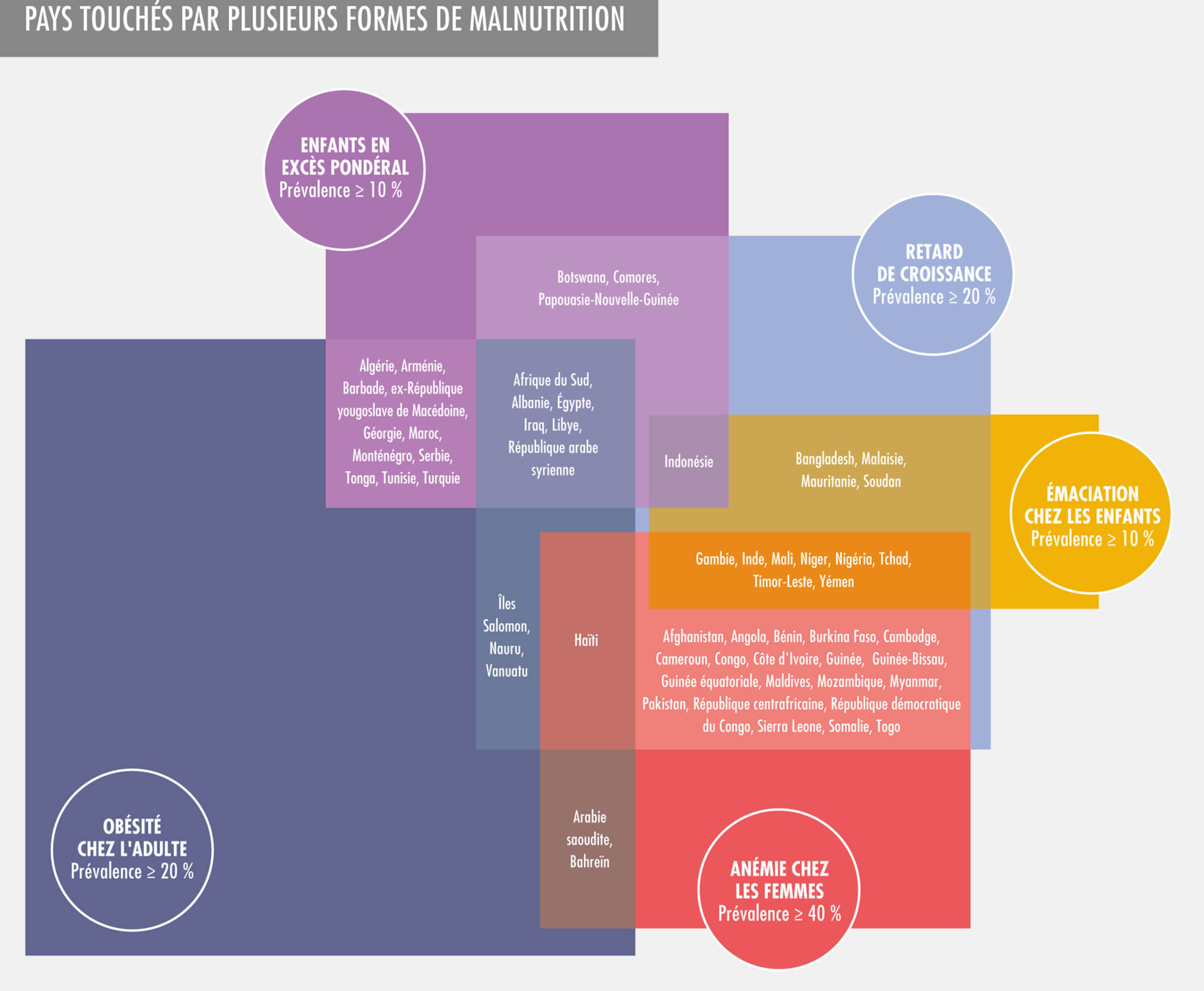 815 millions de personnes souffrent de malnutrition dans le monde selon le FAO. En 2015, il y aurait eu 9,1 millions de morts dus à la malnutrition dans le monde. La malnutrition provoque la mort de 3,1 millions d'enfants de moins de 5 ans chaque année.