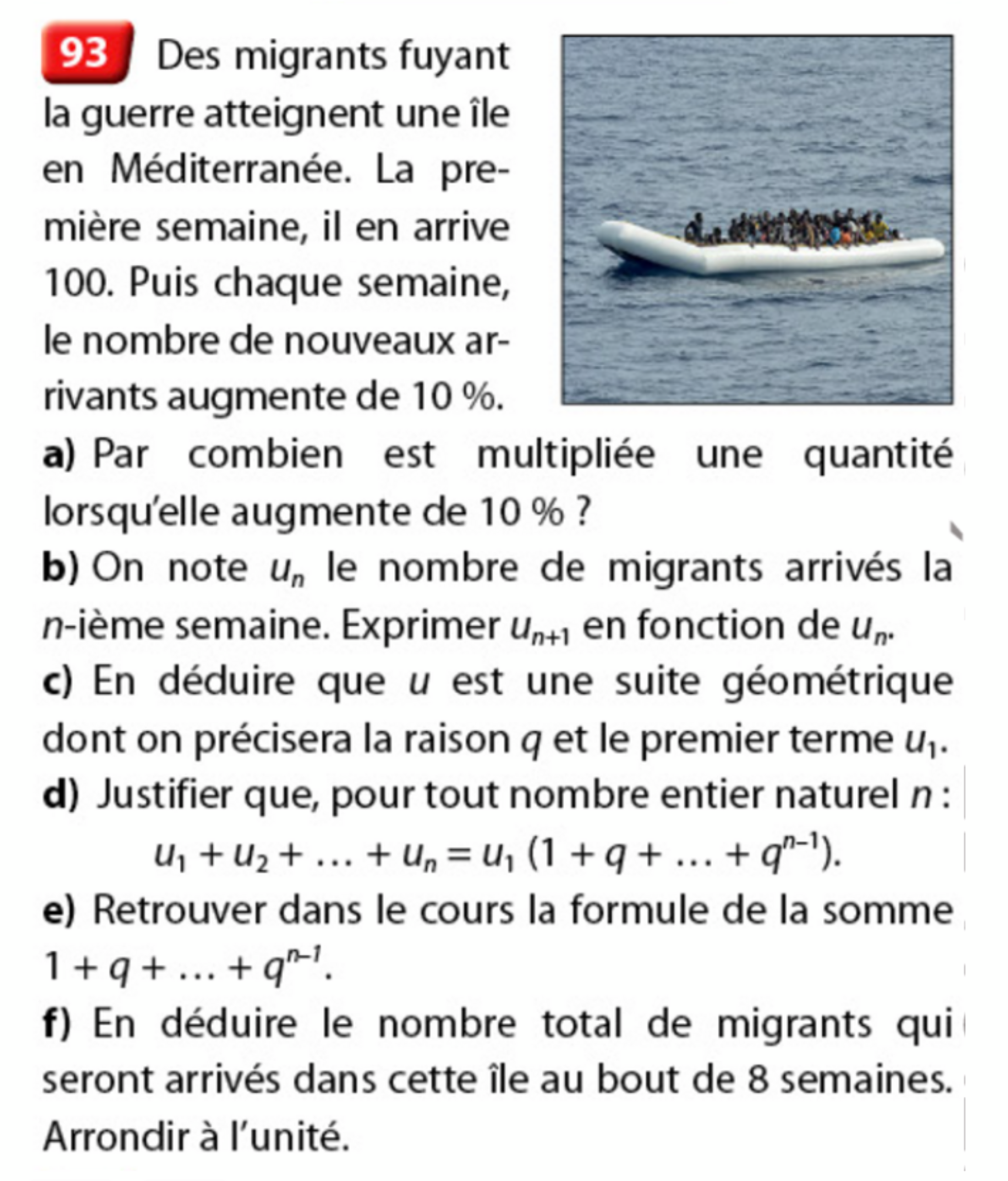Ils invitent également à traduire une situation concrète à l’aide d’une suite arithmético-géométrique. C’est ce que nous avons souhaité appliquer dans cet exercice en prenant un exemple d’une population qui croît régulièrement en lien avec un sujet d’actualité : la question des migrants fuyant la guerre.
