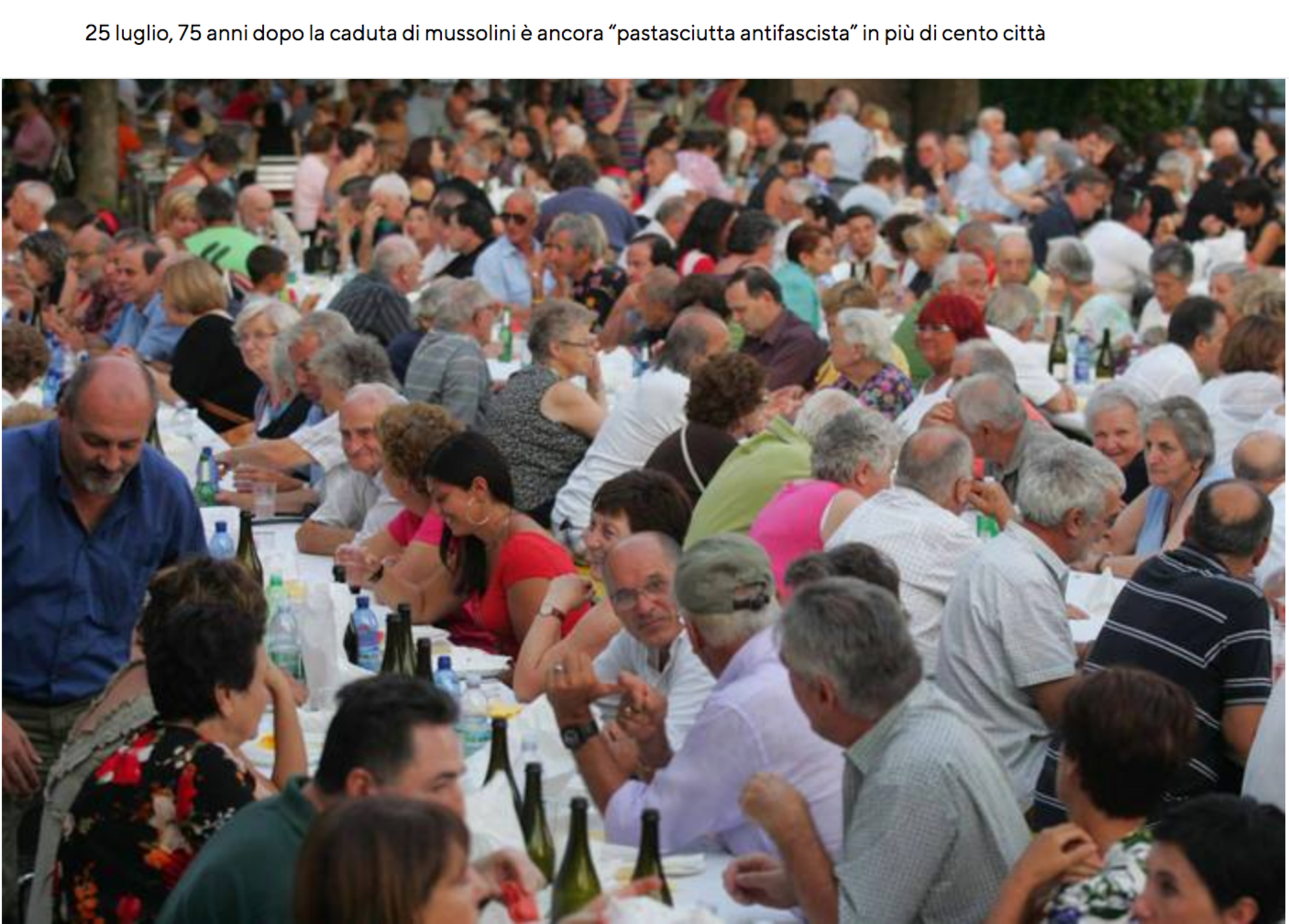 L'Associazione Nationale Partigiani d'Italia (ANPI) annonce pour cette année quelque 90 pastasciutte dans toute l'Italie. Cette pratique commémorative et d'affirmation démocratique, longtemps circonscrite à la région de Campegine et Reggio Emilia, a pris de l'importance ces dernières années alors que la sinistre montée de l'extrême-droite et du néofascisme en Italie rend d'autant plus actuelle et nécessaire sa dynamique antifasciste. Il n'est dès lors pas étonnant non plus qu'une municipalité de la Lega récemment élue, à Mirandola (province de Modène), prétende retirer son soutien à la manifestation sous prétexte qu'elle serait "anti" (pour l'extrême-droite, les prétextes les plus loufoques sont toujours bons à prendre pour s'attaquer aux droits des gens, en particulier des subalternes!).