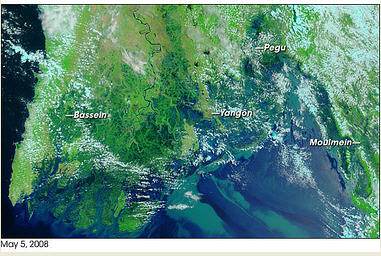 En effet, la Birmanie, malgré les 100000 morts et les 2 millions de victimes (chiffres ONU) du cyclone Nargis, n’ouvre encore ses frontières qu’au compte gouttes aux travailleurs humanitaires. Alors que, d’après Médecins sans frontières, les populations auraient un besoin urgent de vivres et d’experts en systèmes sanitaires pour restaurer des points d’eau potable (http://www.msf.org/msfinternational/invoke.cfm?component=article&objectid=CD18115D-15C5-F00A-254689CCE14CF889&method=full_html). Les risques de crise alimentaire (les stocks de riz de la région, grenier alimentaire de la Birmanie, seraient détruits et les sols salinisés) et d’épidémie sanitaire (choléra) seraient prégnants.