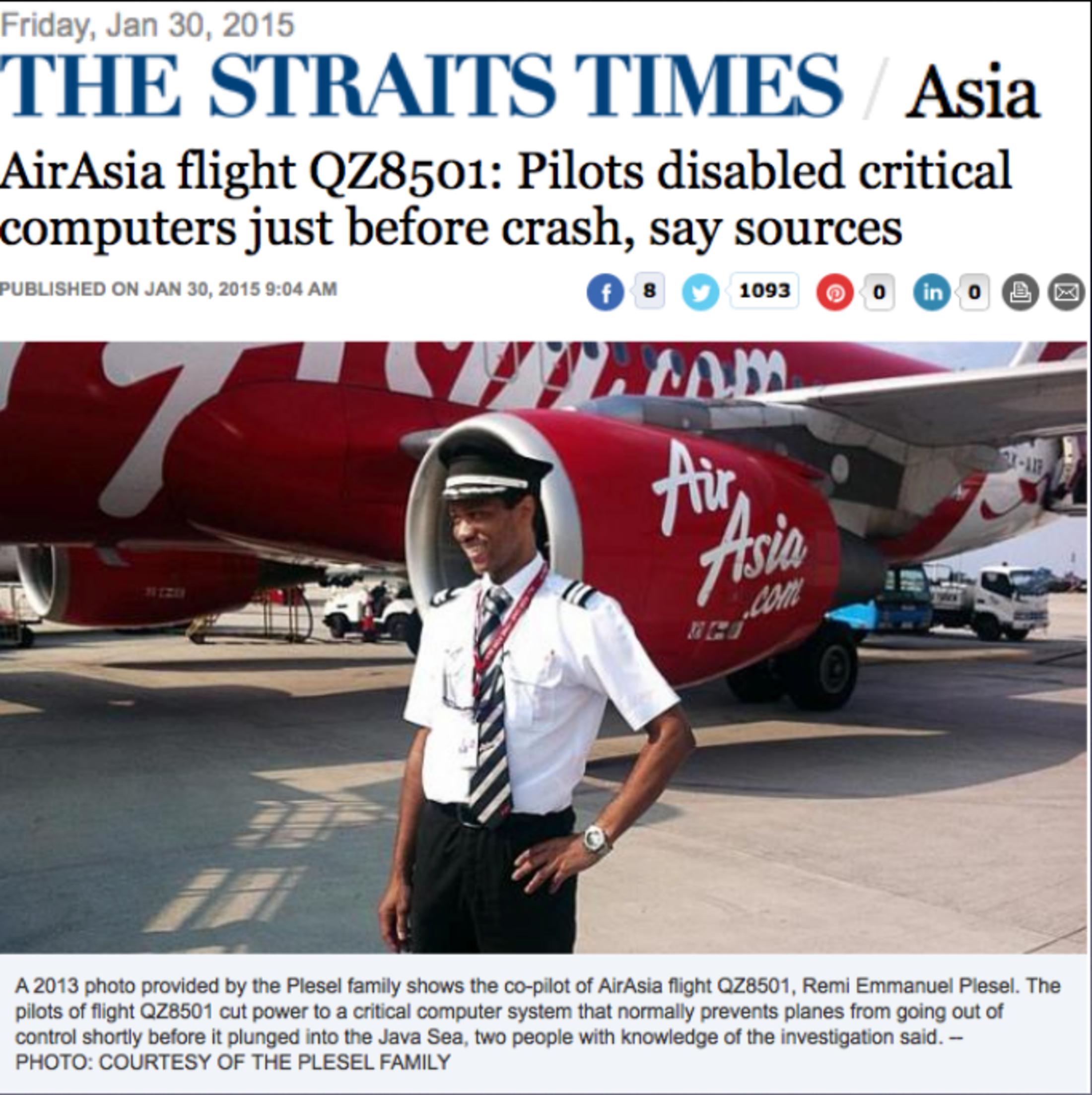 Certes, comme dans toute catastrophe, il y a une cause initiale, mais cette cause initiale dans le crash de l'Air Asia, ne justifie en rien la perte de contrôle de l'avion par le co-pilote Français.