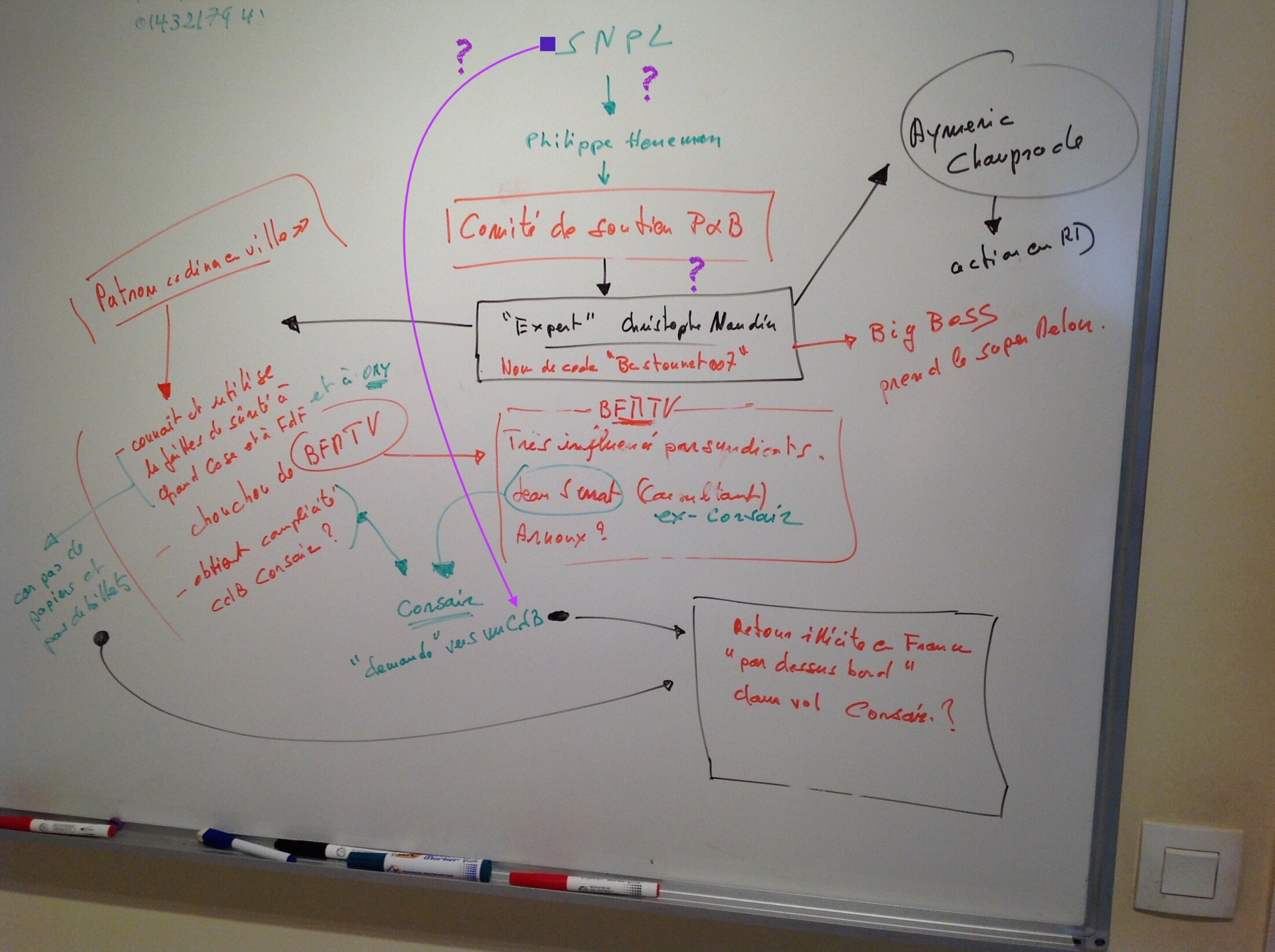 Naudin, lui est recruté par le comité de soutien, c'est à dire par un commandant d'Air France, Philippe Heneman, qui cela va de soi est adoubé par son organisation syndicale, qui ainsi ne se mouille pas, en apparence... Fan du Capitaine Bernier dans Section de Recherches ( Xavier Deluc ), j'ai modestement utilisé ses méthodes....