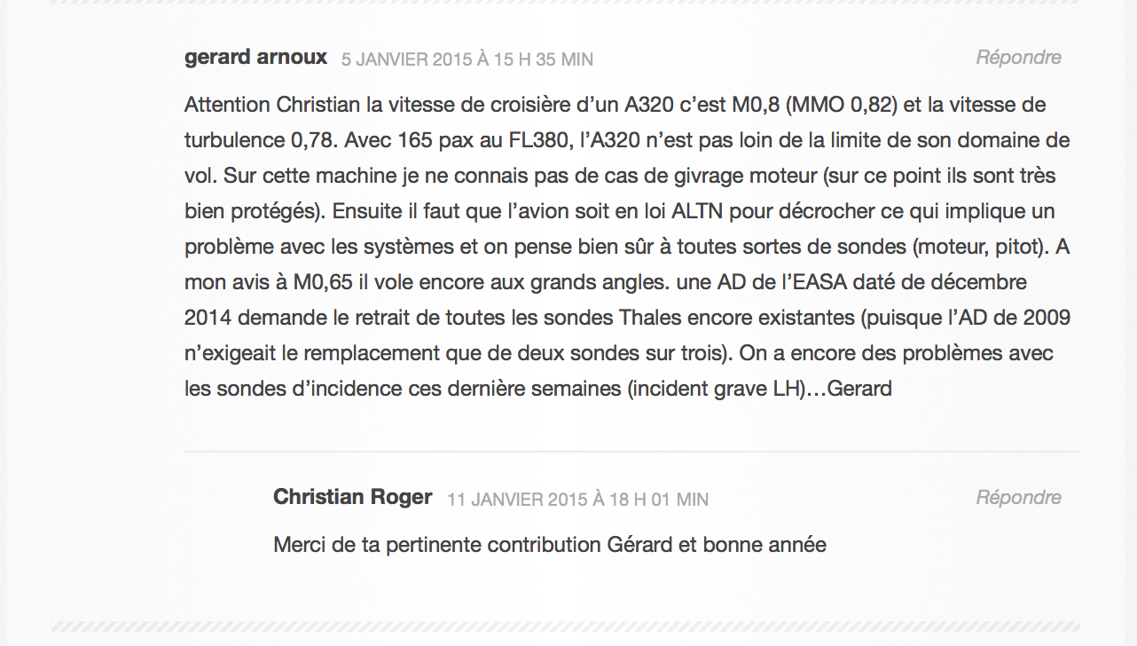 Enfin il nous parle du domaine de vol, indiquant qu'avec 165 pax et au niveau FL380 le vol QZ8501, n'est pas loin des limites de son domaine de vol. Quel charlot !