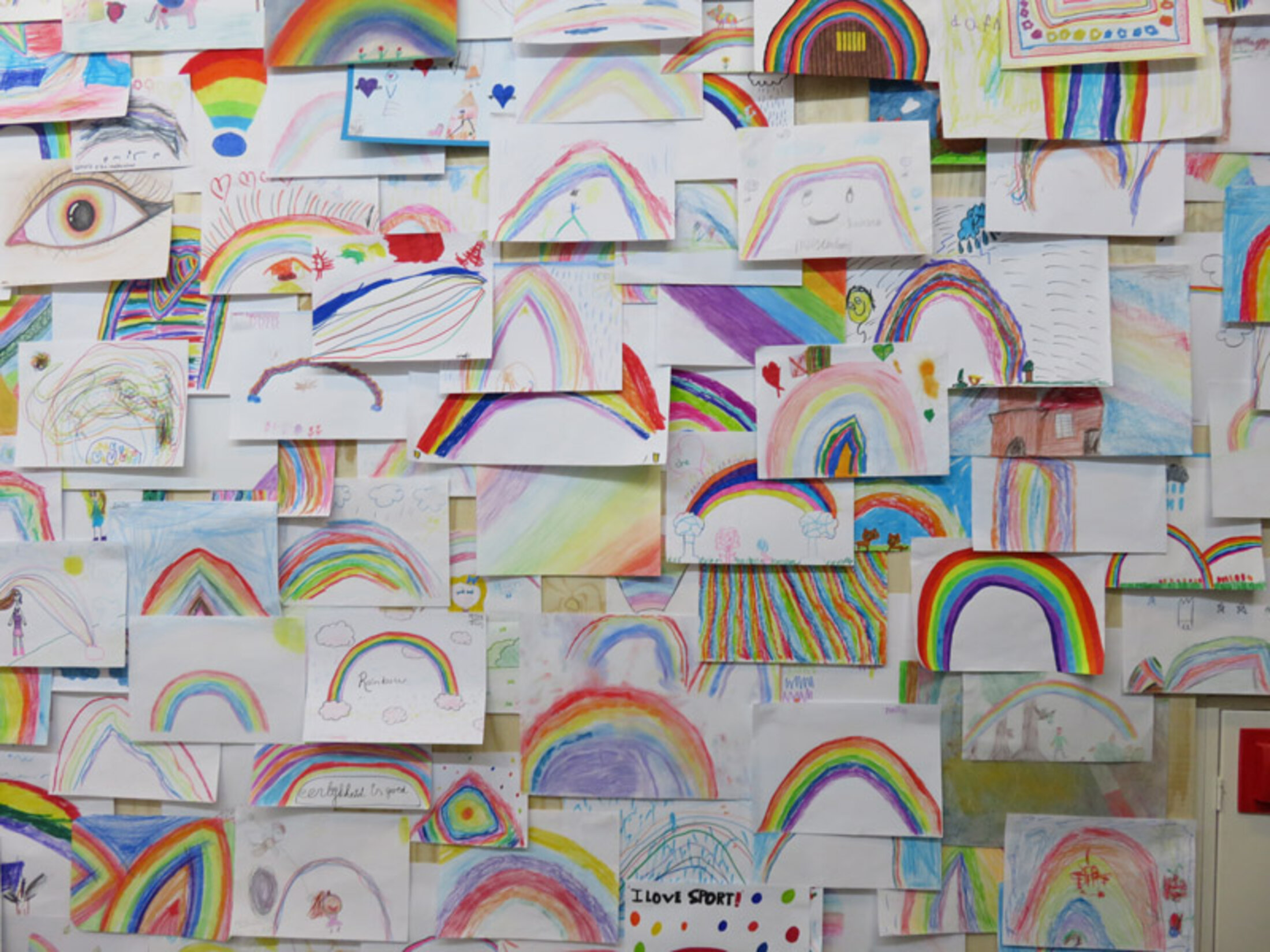Au Musée Boijmans Van Beuningen (sa première grande exposition aux Pays-Bas) Rondinone remplit la plus grande salle de l’institution avec une immense installation comprenant de nouvelles œuvres de sa série de spectres de couleurs, une série de fenêtres (très Duchampiens –‘Fresh Widow/Not French Window’), quelques ampoules de cire géantes et il a également ajouté des filtres de couleur sur la fenêtre immense donnant sur le jardin en créant une atmosphère cinématographique. Sur le mur extérieur il nous souhaite la bienvenue avec des milliers de dessins d’arc en ciel, réalisés par des enfants. Sur le toit du Musée il a en plus installé un arc en ciel énorme avec un texte évocateur : « BREATHE/WALK/DIE ». (Une pièce qui fonctionne comme une mantra ou mandala et qui nous invite à méditer.)