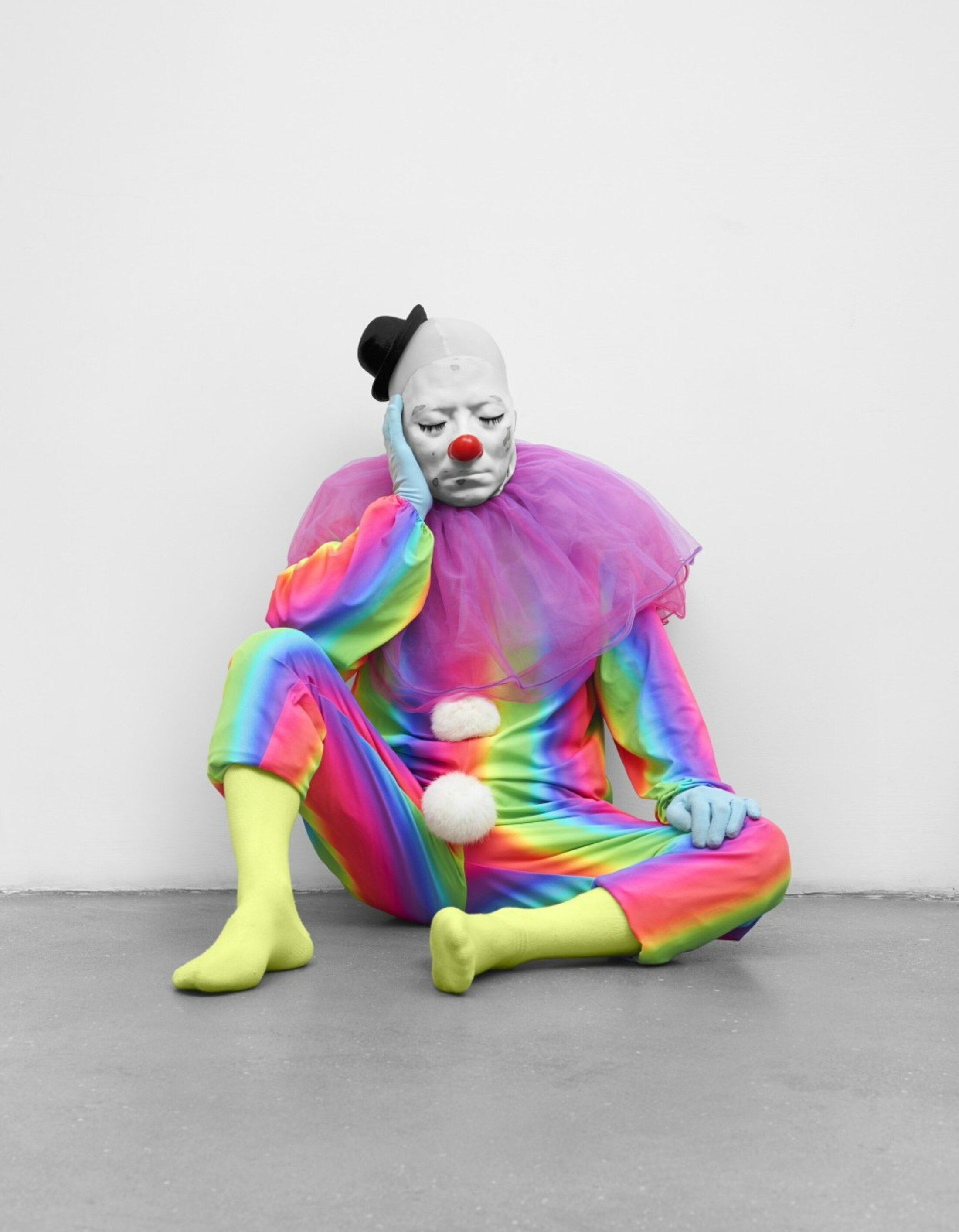 Il nous rappelle le fameux serial killer et le pédofile Américain qui se déguisait en Ronald Mc Donald. De même on retrouve un certain écho du protagoniste de ‘A Clock Work Orange’ de Stanley Kubrick. Comédie et tragédie semblent se promener main dans la main. Rondinone est un metteur en scène talentueux et laisse ses énormes installations parler d'elle-même. ‘Une œuvre d'art’, dit-il, ‘est un succès si le spectateur n'a pas à penser et est conduit naturellement dans une direction particulière’. (“Good art revolutionises your whole being. It is something that stops you, or slows you down.”)