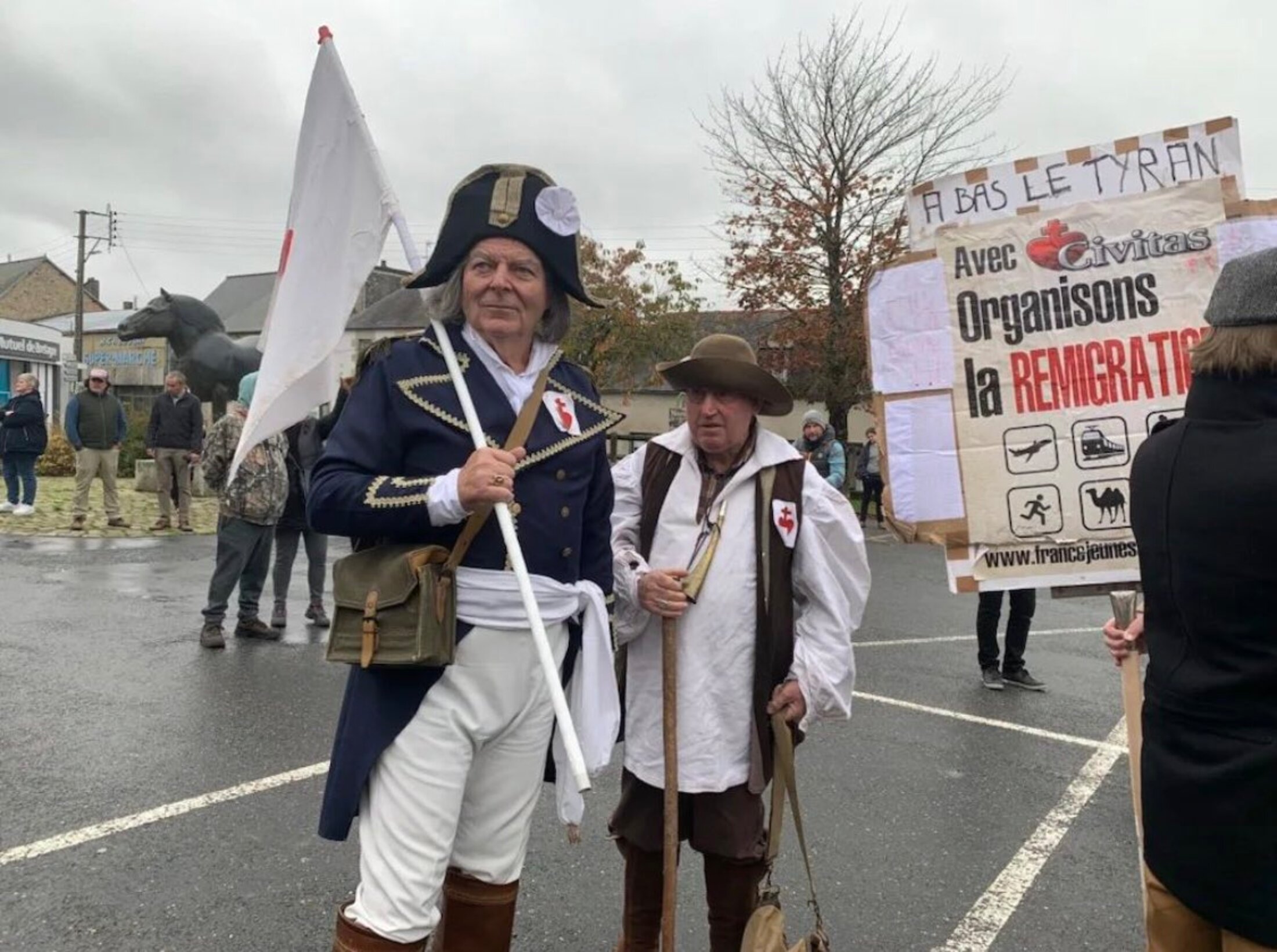 Pour Reconquête, Callac est le lieu de la « mère des batailles », car là se jouera l’expérimentation du « grand remplacement », voulu par le pouvoir politique. Pour combattre ce projet, les bruns se mobilisent. Ils harcèlent la municipalité, l’instance d’attribution des logements sociaux, manifestent et rassemblent au-delà des seuls partis électoralistes.
