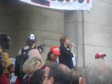 Un petit aperçu de l'arrivée des marcheurs à Montreuil et de Dominique Voynet, maire de la ville, accueillant les sans-papiers devant la mairie.