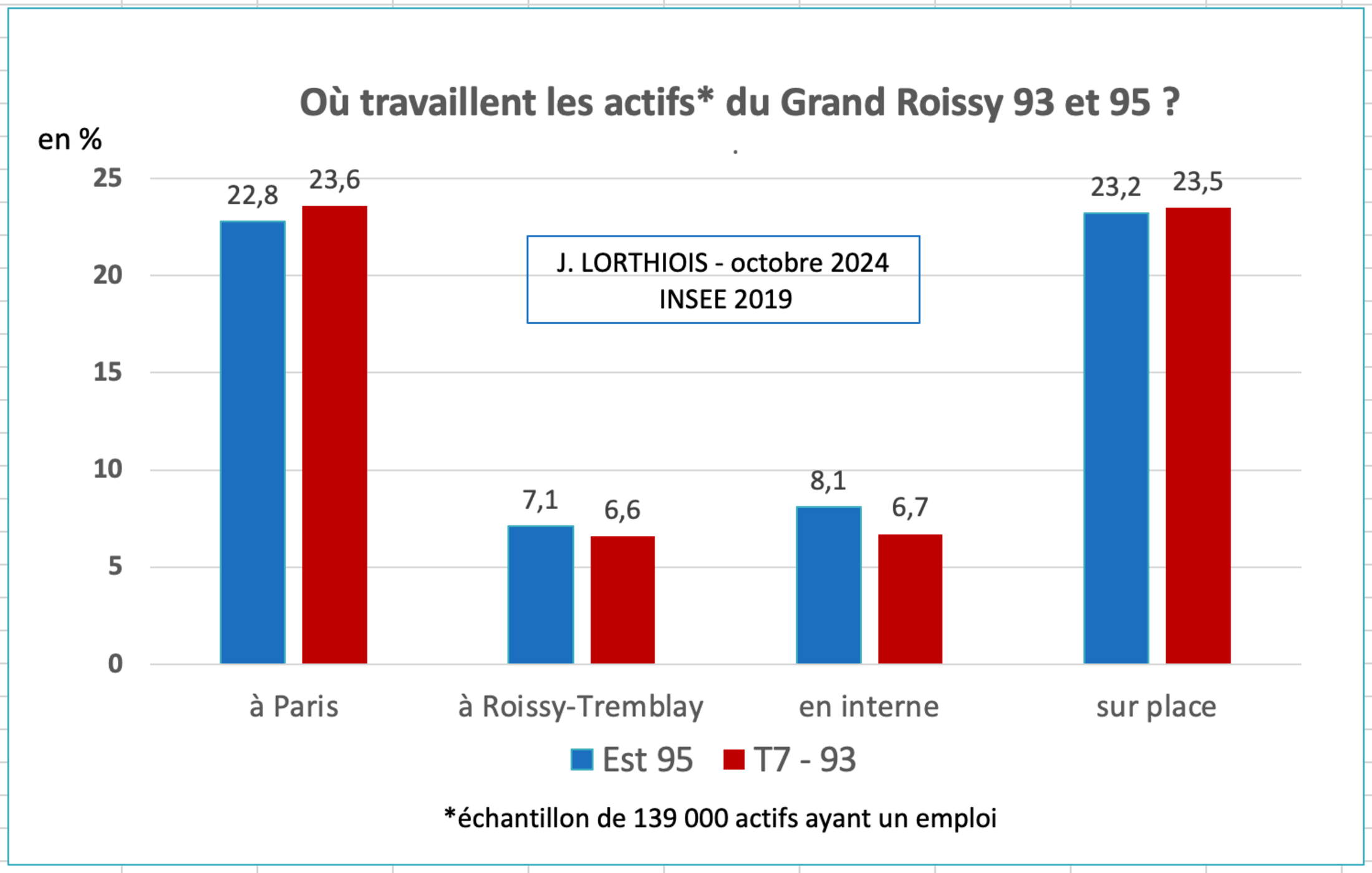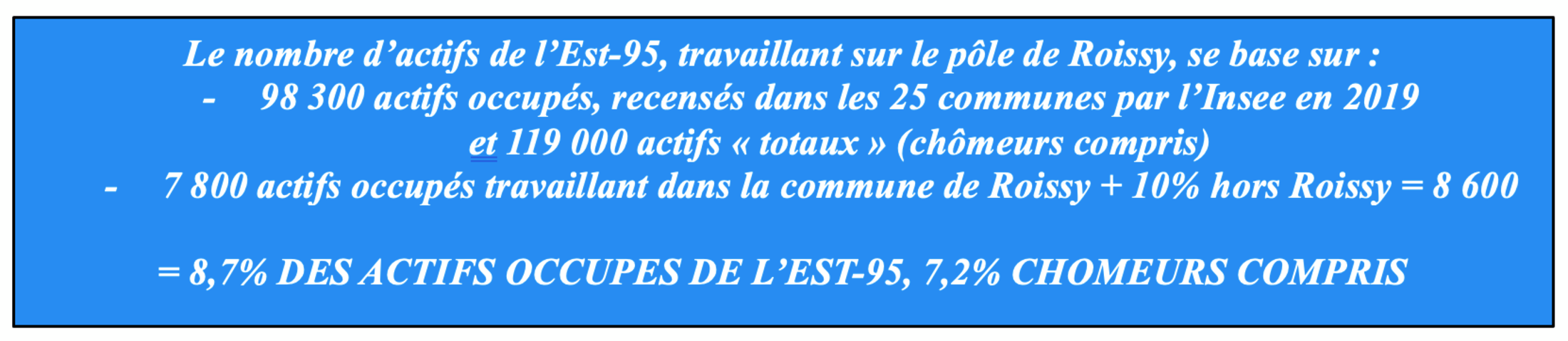 --> Nous trouvons 6,1% d’actifs de l’Est 95 travaillant à Roissy (commune) en 2019.