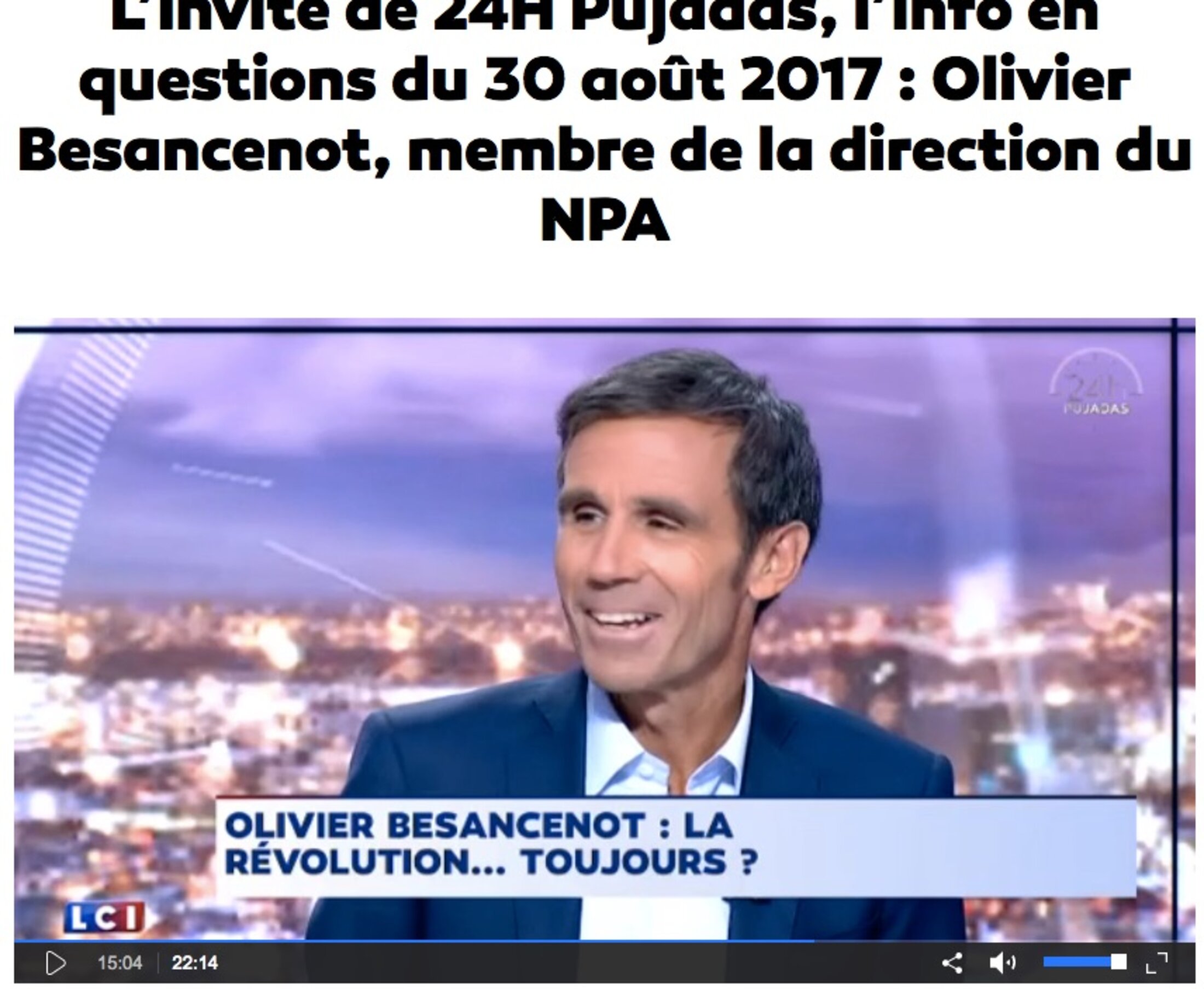 Invité sur ce plateau de LCI, Besancenot ménage sa posture de dirigeant politique et sans vergogne, confortera la propagande médiatique capitaliste, ce qui ne manquera pas de faire naitre un large sourire vainqueur sur la face illuminée de Pujadas.
