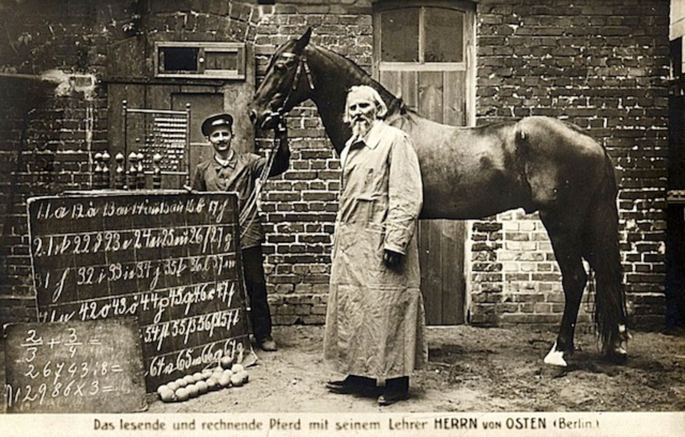 L'expression « bien d'autres choses » se rapportait au fait que le cheval épelait, lisait et résolvait des problèmes d'harmonie. Le cheval s'appelait Hans et méritait le qualificatif « kluge » (malin). Son maître, Wilhelm von Osten, était un professeur de mathématiques retraité. Il ne voulait pas vendre son cheval, mais seulement attirer l'attention sur l’animal, de façon à démontrer les capacités de raisonnement des animaux [17].