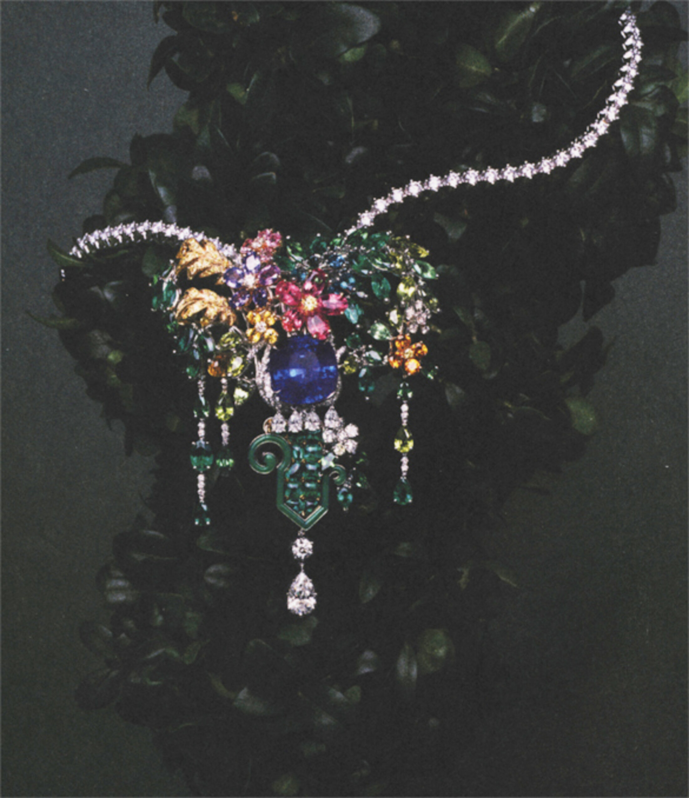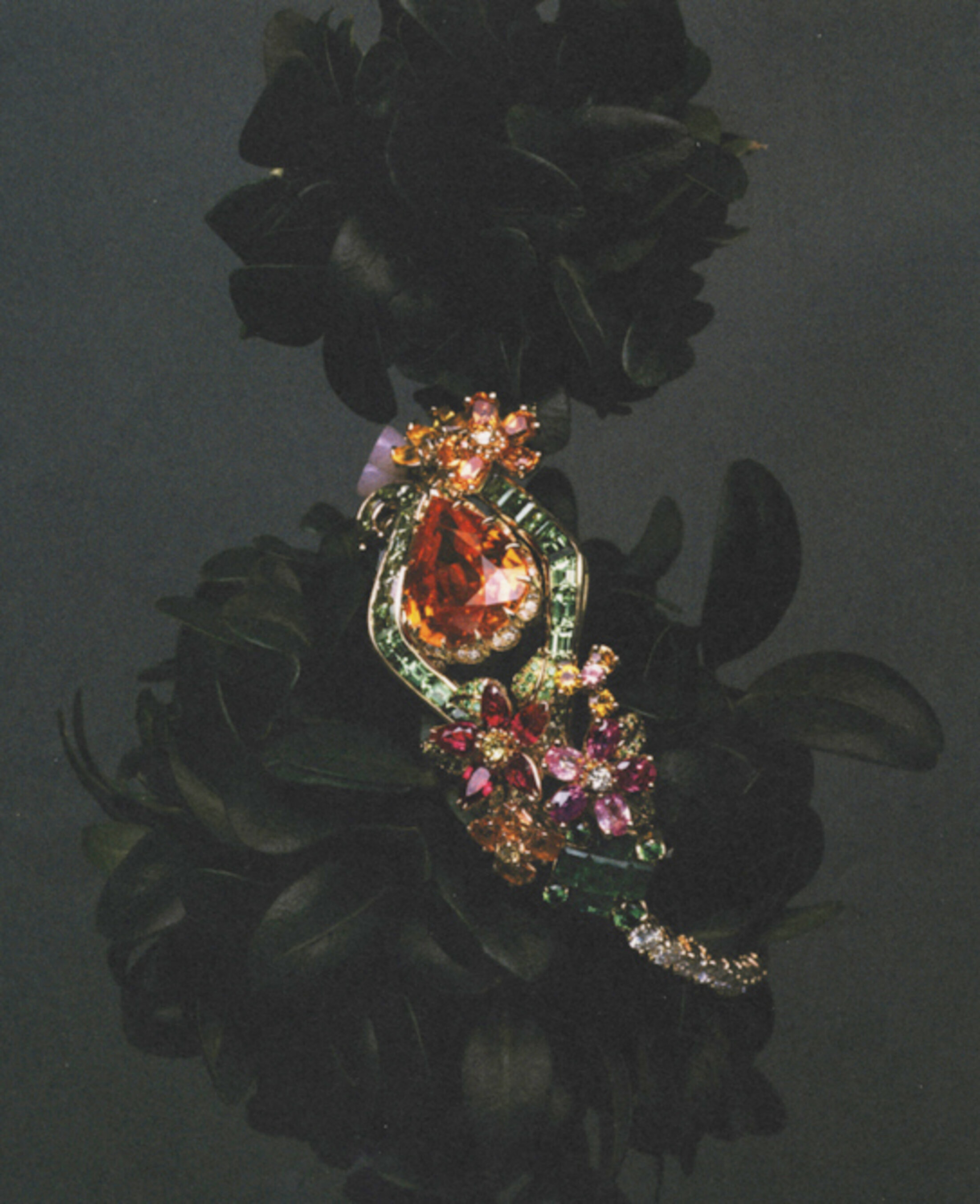 Donc les choses « tendances » et qui le sont depuis n décennies, les « formes très pures », etc. ne m'intéressent guère, et j'avoue aussi être plutôt blindé devant diamants, rubis et saphirs, solitaires, moins devant les émeraudes. Mon goût va plutôt aux choses d'allure ancienne et fastueuse, et j'aime vraiment beaucoup, par exemple, chez Dior Joaillerie, de Victoire de Castellane, la descendante de l'ami de Marcel Proust, les deux pièces étonnantes, très compliquées, que je découvre pages 106 et 108 (Beethoven, c'était 108 et 109, rappelez-vous) du dernier numéro de L'OFFICIEL (Paris) (n° 1020 Décembre-Janvier 2017/2018), « Bosquet de l'Encelade Saphir » et « Orangerie Grenat Spessartite ». Oui, il me faut l'admettre à mon corps défendant, c'est très beau, c'est admirable, surtout le « Bosquet de l'Encelade ». Et quand je lis que ce joyau est composé, entre autres, (diamants, saphirs, émeraudes « normaux » sont au rendez-vous) de « grenats tsavorites, péridots [l'un des minéraux les plus anciens sur terre, mais aussi dans les météorites], tourmalines roses, saphirs violets, grenats démantoïdes [et s'ils étaient démentoïdes, c'était pour moi, j'aurais pu revendiquer le tout] et spessartites, diamants jaunes, alexandrites, saphirs roses, chrysoprases et saphirs jaunes », il s'en faut de peu que la tête ne me tourne.