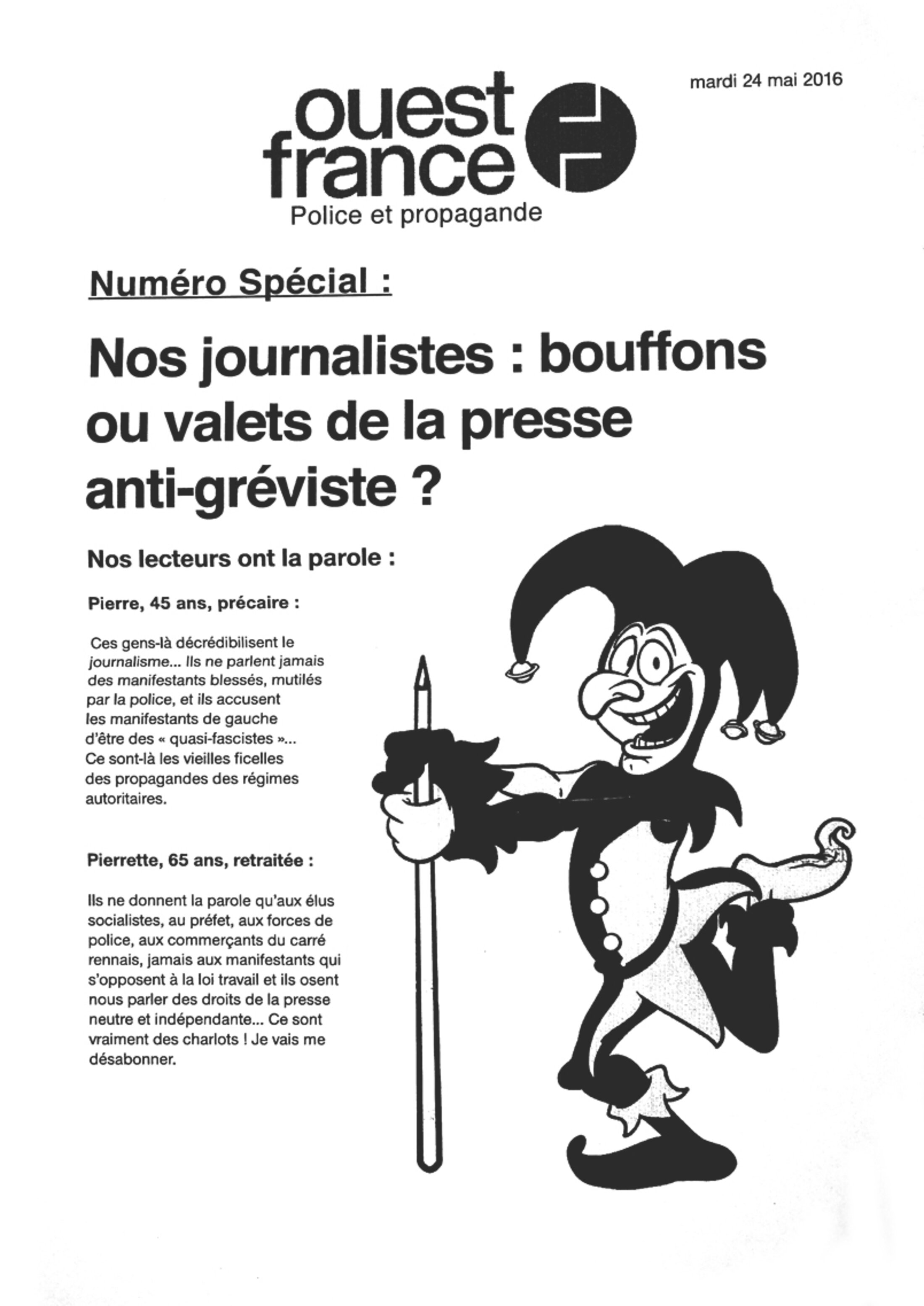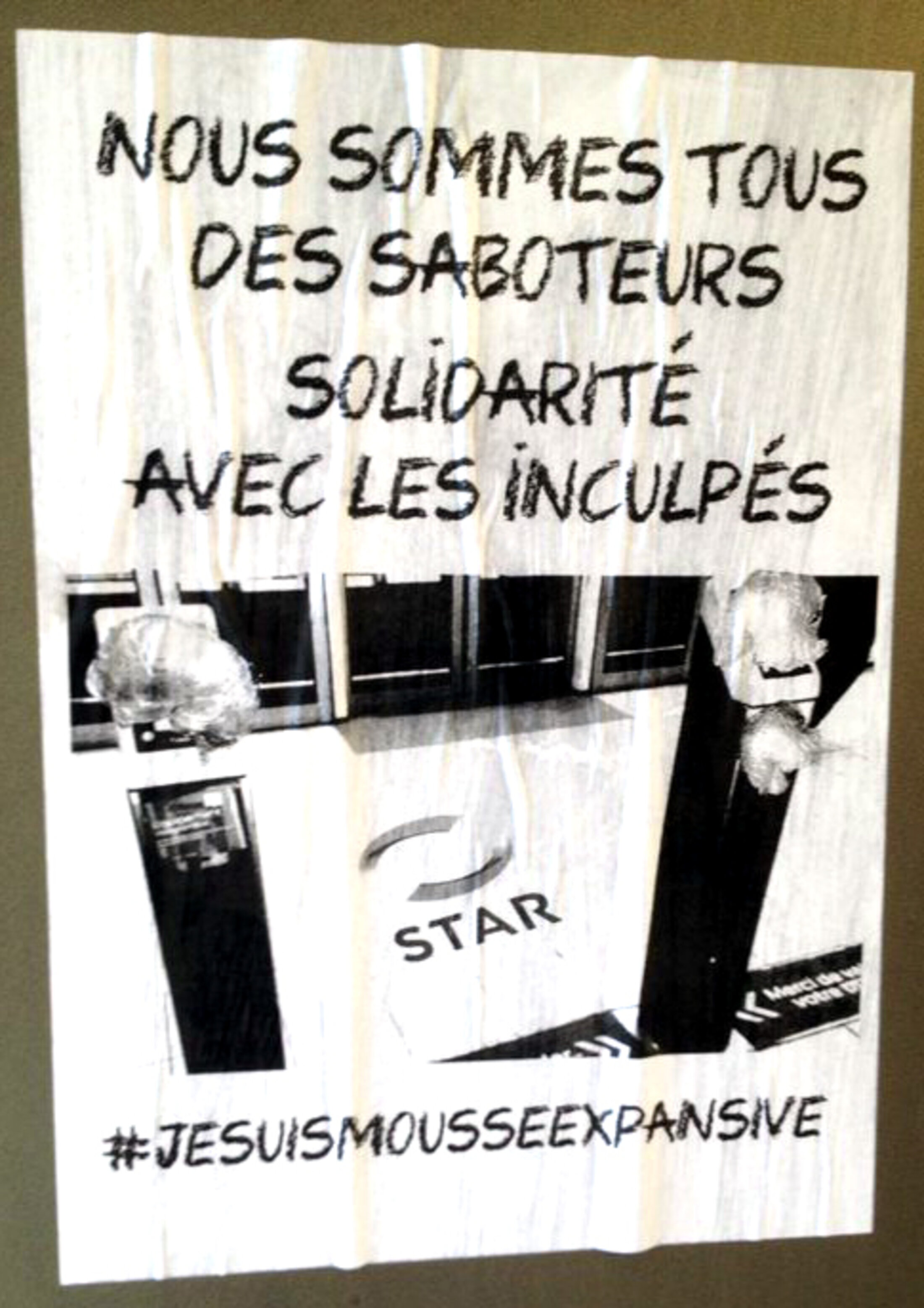 Eh bien, ce sont plusieurs dizaines de personnes supplémentaires que la justice va devoir poursuivre ! Les mâchoires de la machine judiciaire ne seront jamais assez grandes pour attraper tous ces faux coupables créés à l’envi. Une affiche « nous sommes tous des saboteurs », signé par #mousseexpansive était concomitamment placardée un peu partout en ville. D'autres raillant le fameux quotidien Ouest-France. Ou encore, la maire de la ville et son ancien préfet connaissent également un beau succès.