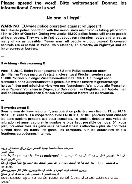 Chasse européenne aux sans-papiers du 13 au 26 octobre 2014