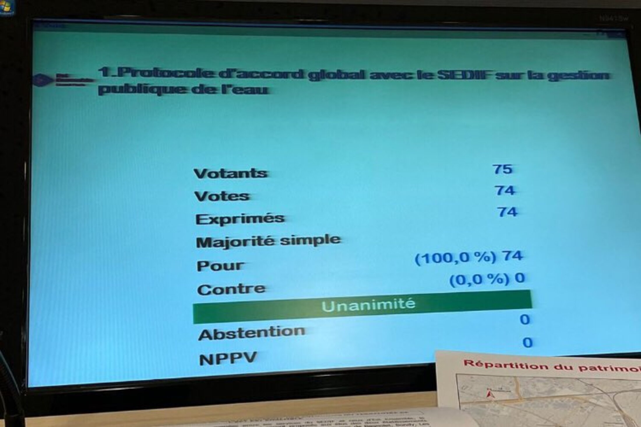 Enfin le SEDIF a enregistré la demande de sortie des villes de Bobigny et de Noisy-le-Sec. Il devra se prononcer lors de son comité syndical du mois de juin. Les deux tiers des villes membres du SEDIF devront aussi donner leur accord par une délibération de leur conseil municipal.. Un processus particulièrement lourd qui demande une grande vigilance pour que le choix de Bobigny et de Noisy-le-Sec soit respecté in fine.
