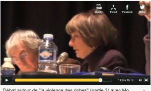 Monique Pinçon charlot: Moi je rajouterai juste un mot par rapport à ce que vous avez dit. Aujourd’hui rendez vous compte que jamais les prêts de la BCE n’ont été aussi bas (0,25%) et à combien ils prêtent à la Grèce à combien ils prêtent au Portugal? vous le savez? c’est juste en dessous de 10% 9% ou 8%. Et donc c’est cela qu’on décrit dans notre livre. C’est cette arme financière. Comment on peut appeler cela autrement.