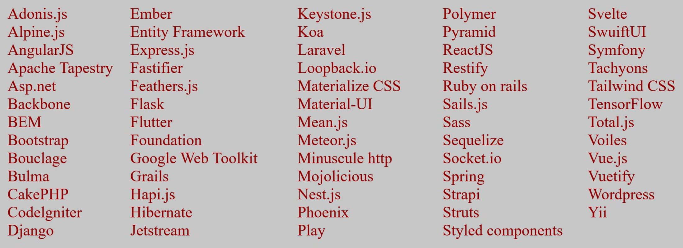 - Une troisième étude donne : Django, ExpressJS, Flask, Laravel.