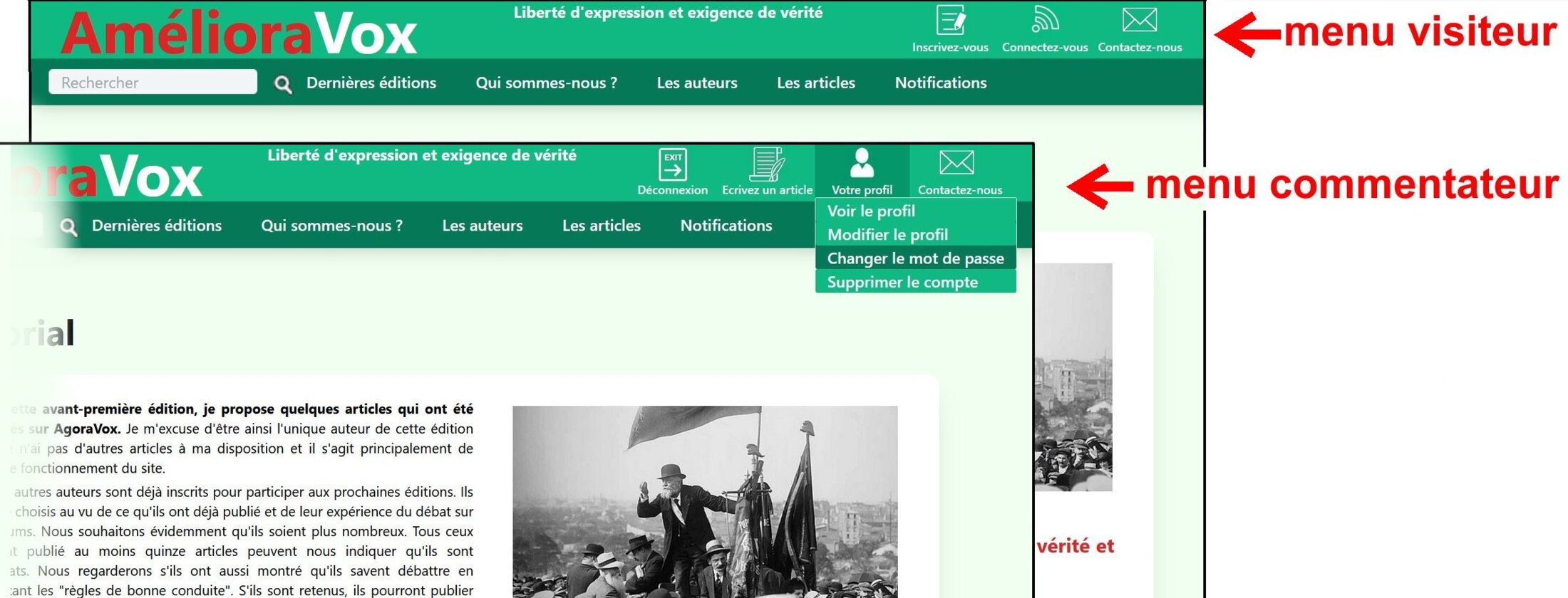 - Les simples visiteurs (visitor). Ils ne sont pas connectés et ne peuvent donc que visiter Le site pour regarder les articles qui sont proposés avec les différents outils permettant de les rechercher. Les visiteurs ne sont pas connectés soit parce qu’ils l’ont choisi soit parce qu’ils sont sanctionnés : ils subissent alors ce que nous appellons un « blocage global ».