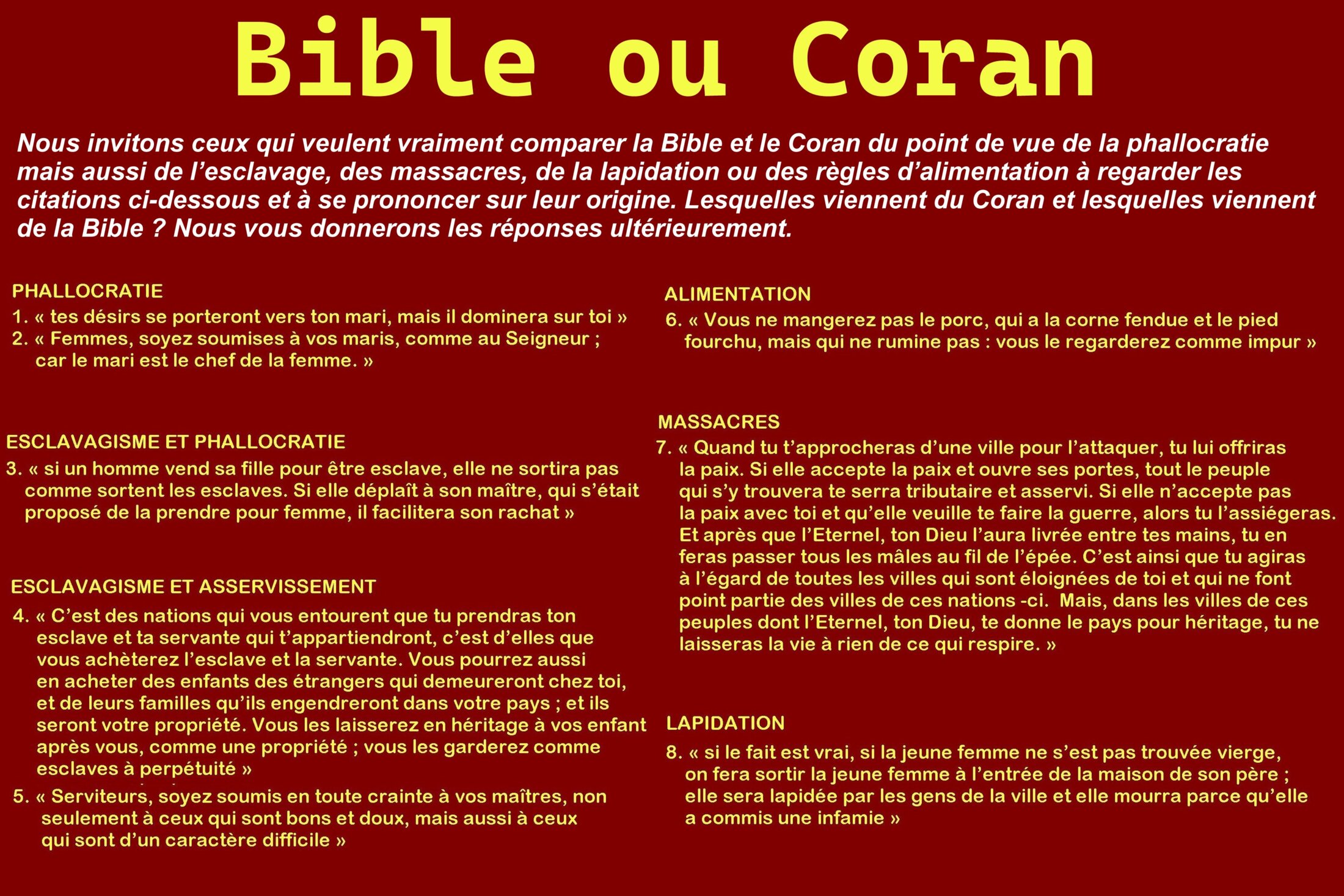 Remarquons au passage, n’en déplaise aux islamophobes, qu’il est bien fait mention dans la Bible de la nécessité pour les femmes de porter un voile en signe de soumission à l’homme et que nous n’avons rien trouvé de semblable dans le Coran. De fait, même si la pratique évolue, les femmes catholiques devaient, il y a seulement quelques décennies, porter un voile dans les églises et quasiment une burka lors des enterrements. Toutes les icônes, les vitraux et les statues dans les églises catholiques montrent les femmes avec un voile à l’exception de Marie-Madeleine la pécheresse. Nous nous réjouissons que des femmes s’émancipent de ces pratiques dans ces trois religions. Il est certain que, de ce point de vue, l’islam accuse actuellement un retard par rapport au christianisme sans pour autant qu’il y ait sur le principe de différences fondamentales. Il faut se réjouir que ce combat, qui est une composante de la libération de la femme, fasse des progrès dans certains pays notamment au Maghreb.