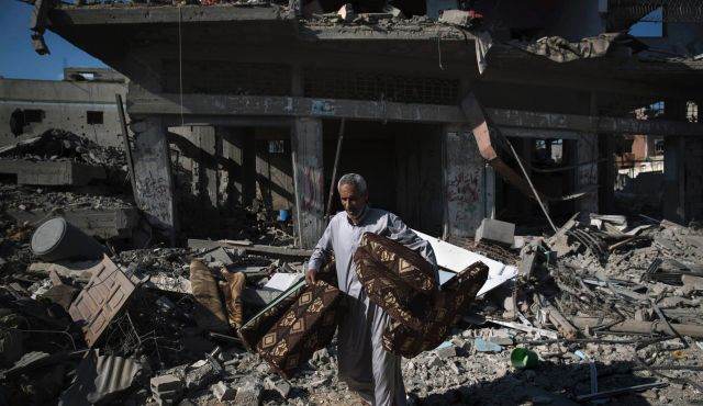 Un Palestinien sauve quelques biens du quartier détruit d'al-Shoujaiyeh, à Gaza, le 27 juillet 2014. Photo: Reuters