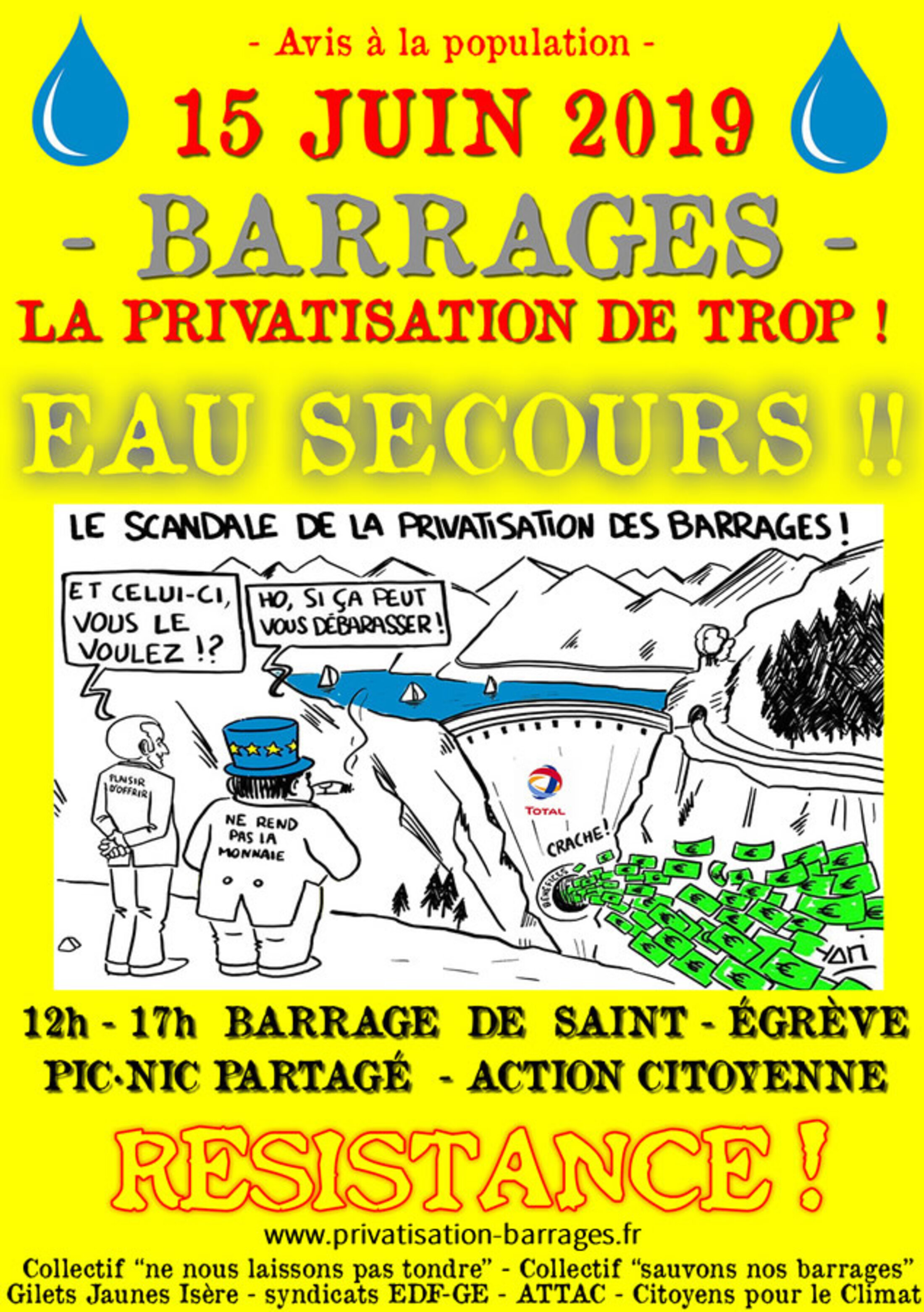 Mais ce n’est pas tout ! Pas de transition écologique réussie sans monopole public intégré des barrages, pour quitter les énergies fossiles et pour sortir progressivement du nucléaire, pour intégrer les énergies du futur, solaire et éolien, non pilotables, non stockables, bref, pour sauver la planète de nos enfants, il faut empêcher cette casse organisée criminelle.