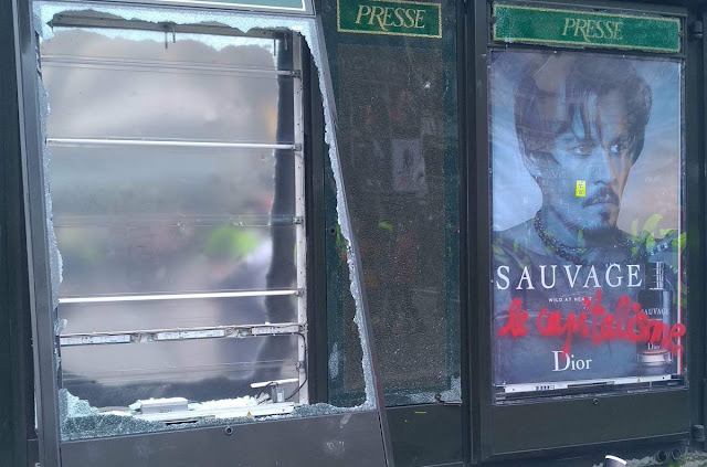 Les sirènes de la police hurle partout, les flics les suivent donnant à la ville une ambiance de chaos rare. Le soleil qui a remplacé les nuages du matin ont chauffés l’atmosphère, l'odeur des poubelles brulés, les lacrymos, les incendies donne une parfaite ambiance et avant gout climat de chaos que feront germés le chaos climatique.