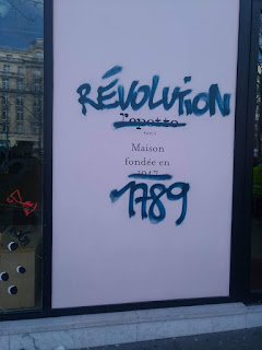 Le début est tranquille. Des tague, quelques mobilier urbains arraché et au fil des heures la casse des protection, le fouquet est cassé pendant plusieurs heures, doucement, avec quelques interventions des CRS qui prennent position devant, puis repartent...
