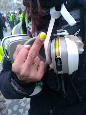 Si le gaz est en abondance, les tir de LBD rare et les GLI 4 , les grenades assourdissantes quasi inexistantes comparé à l'abondance du 8 décembre. Je me souviens du bruit assourdissant et d'avoir fini abruti de leur explosion, sonné.