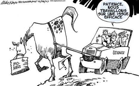 L'erreur fondamentale est que notre civilisation accapare dejà la moitié de tout ce que produit tous les écosystèmes et que même si nous prenions tout, cela ne suffirait pas. La solution est dans la décroissance énergétique et l’exploitation du soleil et du vent.