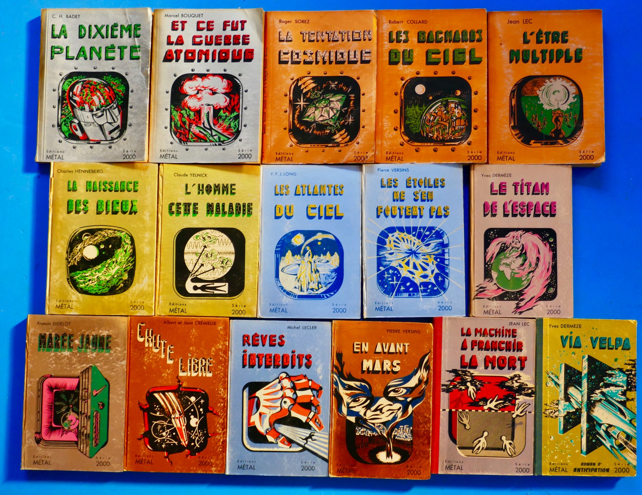 Dans mon article sur Le Météore du 21 décembre 2012 j'écrivais : "Publié par Stellarque, le nouveau numéro du fanzine de science-fiction [n°13] aborde la collection mythique Série 2000 des Éditions Métal qu'avait cofondées mon père, avec le coauteur du Matin des magiciens, l'écrivain Jacques Bergier. Quinze ans avant la célèbre collection argentée Ailleurs et Demain (Ed. Robert Laffont) [inspirée] par Paco Rabanne, mon père et Jacques Bergier avaient ensemble imaginé des livres métallisés, cuivre, or ou argent. Cela n'en rapporta probablement pas tant, vu que mon père changea ensuite une fois de plus de métier ! [Dans le Météore], Didier Reboussin met l'accent sur les écrivains phares de la collection, Charles et Nathalie Henneberg (la véritable plume du couple alors qu'il signait seul !), Ferdinand Lecoublet dit Jean Lec [peintre et graphiste], Robert Collard dit Lortac [pionnier du dessin animé en France], Pierre Versins [historien érudit et collectionneur], Albert et Jean Crémieux, Jean Rousselot dit Christian Russel, [le journaliste] Claude Yelnick [un des scénaristes de « Mickey à travers les siècles » !], Adrien Sobra [alias Marc Agapit], etc., dont il décrit les étonnants pédigrées."