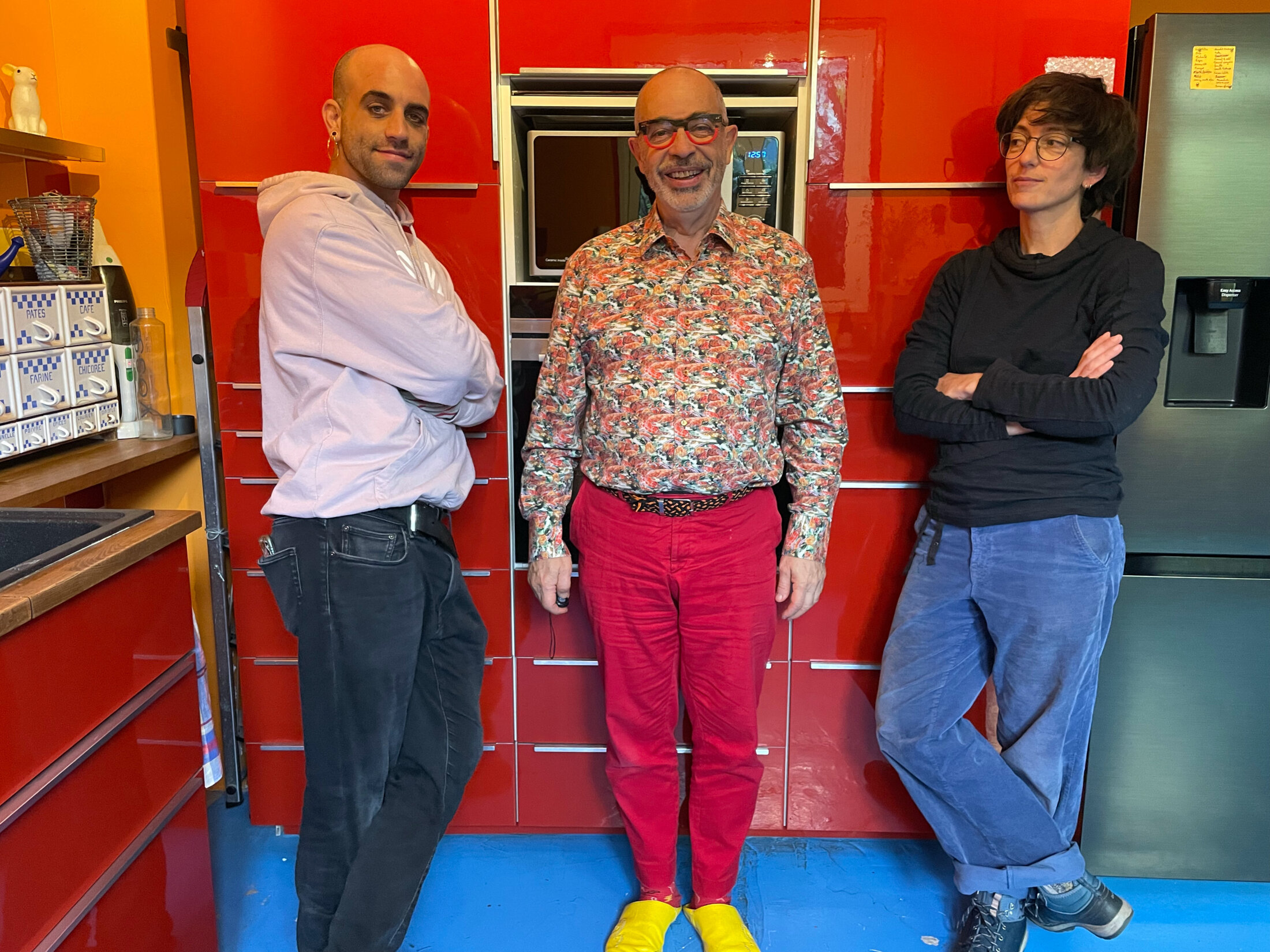 Encore une fois mes invités ont choisi de tirer le thème de nos improvisations avec les cartes Oblique Strategies de Brian Eno et Peter Schmidt plutôt que celles de Dixit ou s'inspirer d'une œuvre picturale ou photographique. Exceptionnellement, la veille, comme j'étais aux fourneaux, j'avais préparé l'image de couverture et trouvé le titre de circonstance, le sens et la phonétique validant nos choix. Il restait à faire la photo de ce nouveau trio lors de la pause déjeuner. Pour décor, Olivia et Bruno ont choisi les couleurs de la cuisine qui collaient avec mon accoutrement et l'orange et bleu de la "pochette". La matin nous avons enregistré Le principe d'incohérence, Humanisez quelque chose dépourvue d'erreur, Essayez de faire semblant ! et l'après-midi Célèbre ton erreur comme une intention cachée, Vers l'insignifiant, Distorsion du temps. On notera l'étonnante cohésion de l'ensemble des titres, renforçant l'idée qu'il faut entendre errare humanum est comme une glorification de l'acte de création en rejetant toute velléité de perfection. Bernard Vitet insistait toujours sur la nécessité non d'être original, mais personnel, en assumant, à ce degré d'excellence, que ce sont les erreurs qui font le style.