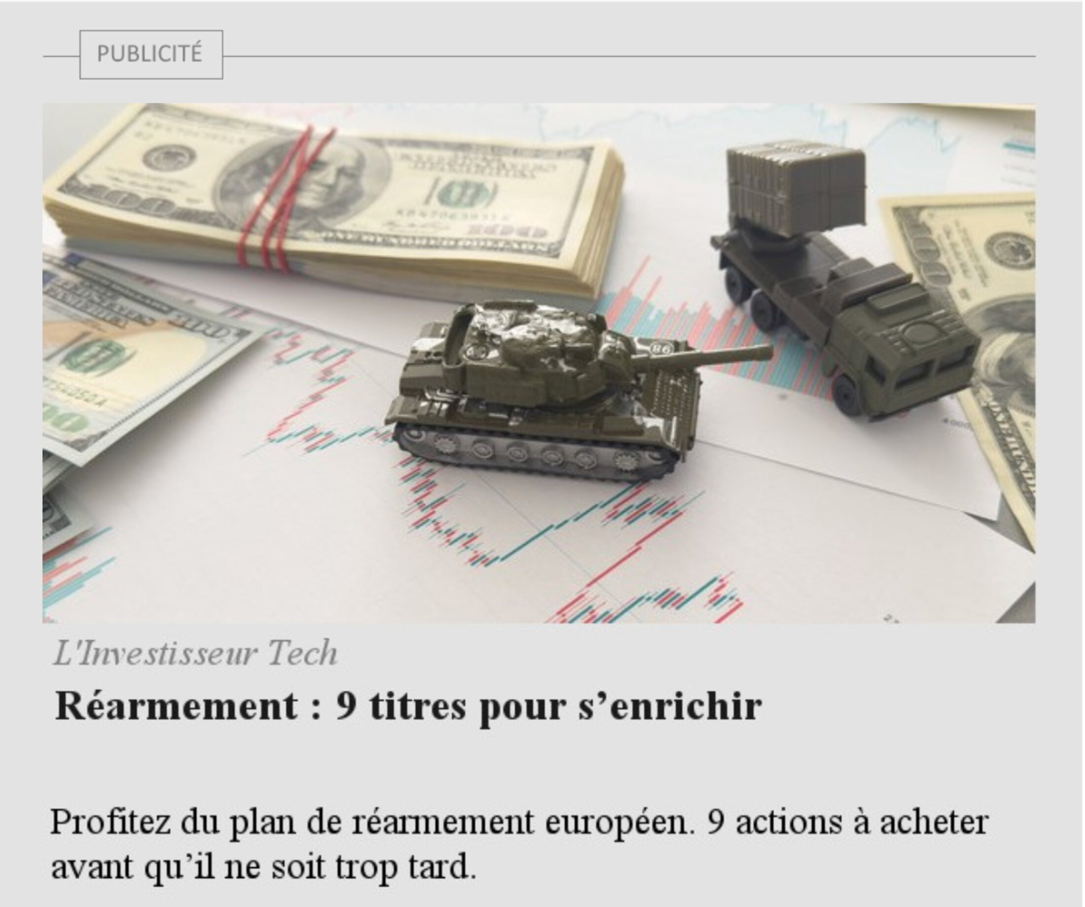 Cynisme des marchands de canons et hypocrisie du journal Libération qui intègre leur publicité dans ses mails aux abonnés. Le titre, "ReArm Europe" : Comment tirer profit du plus grand plan de relance militaire de l’histoire de l'UE d’ici 4 à 8 mois. Les trois arguments : ✅ Pourquoi l’Union européenne injecte 800 milliards d’euros dans l’industrie de la défense, créant une opportunité unique pour les investisseurs. ✅ Comment certains de nos lecteurs ont déjà réalisé des gains de +380% grâce à certaines de nos recommandations sur des valeurs clés du secteur militaire. ✅ Découvrez 9 entreprises européennes stratégiques qui devraient tirer profit de ce pactole gigantesque. Les neuf entreprises ne sont évidemment pas nommées, mais ce n'est pas très difficile de les identifier.