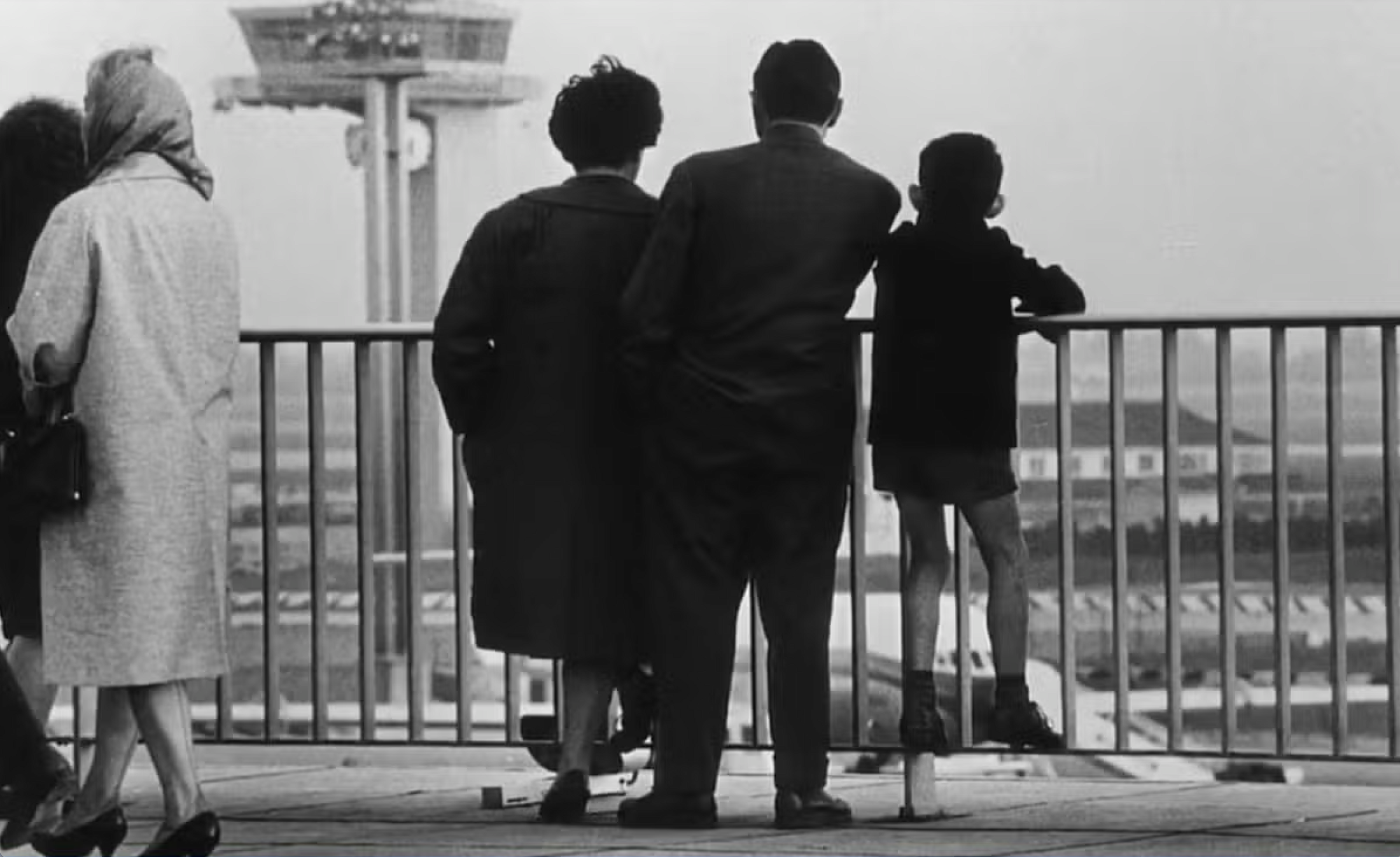 En réalisant Le cinquième plan de La Jetée Dominique Cabrera signe un film réellement markerien. Le réel n'est pourtant pas ce qui a jamais passionné Chris Marker ou s'il s'appuie dessus c'est toujours pour le projeter dans une dimension poétique où le faux-semblant lui donne sa véritable dimension documentaire. Marker est un transpositeur, un illusionniste qui révèle ses tours de passe-passe sans baisser le masque. On sait bien que lors de la projection de son film le plus célèbre, La jetée, filmé en 1962, de nombreux spectateurs ne s'aperçoivent pas que c'est un montage de vues fixes, à un plan près. Cette science-fiction dystopique, qui joue sur le temps et la mémoire, est emblématique de tout son cinéma. Le faisceau d'accidents que certains appelleraient des coïncidences a touché Dominique Cabrera, comme un effet de contagion féérique. La phrase de Marker « Le hasard a des intuitions qu’il ne faut pas prendre pour des coïncidences » a contaminé Cabrera lorsqu'elle apprend que son cousin se reconnaît enfant dans le cinquième plan de La jetée alors qu'il est allé voir le film avec sa fille à la Cinémathèque. La réalisatrice enquête. Cette année-là, une année fatale pour la famille Cabrera, le jeune Jean-Henri accompagne souvent ses parents le dimanche à Orly pour tenter de reconnaître d'autres pieds noirs débarquant d'une Algérie qui vient de conquérir son indépendance.