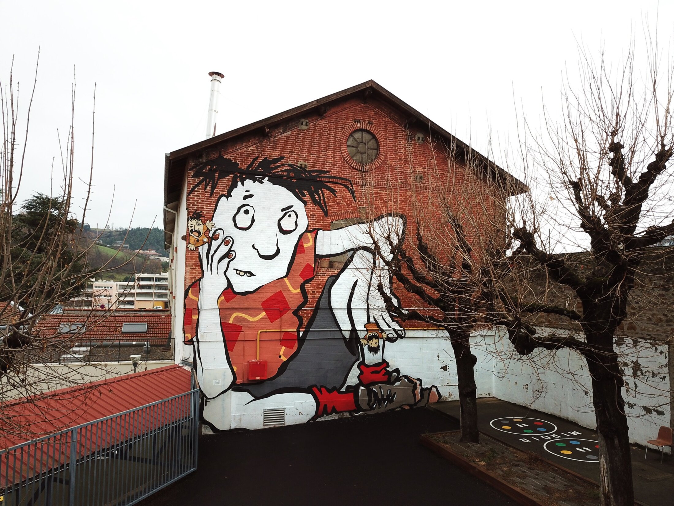 On peut imaginer que c'est en peignant Tony avec ses deux marionnettes de doigts sur la façade de l'école de la Ricamarie que l'idée de proposer le MUR à ces enfants de maternelle et primaire leur est venue. Pour cette cent-trentième affiche, ce n'est pas la première fois que des artistes en herbe s'y collent et pas la dernière. Ils avaient commencé il y a longtemps avec leurs propres enfants quand ils étaient tout petits et d'autres élèves d'écoles sont depuis intervenus sur le MUR. Pour l'année à venir, il est question qu'il y ait parmi leurs invités les Papotins, ainsi que des autistes et des handicapés. Ils continueront également à collaborer avec des écoles situées en ZEP (zone d'éducation populaire).